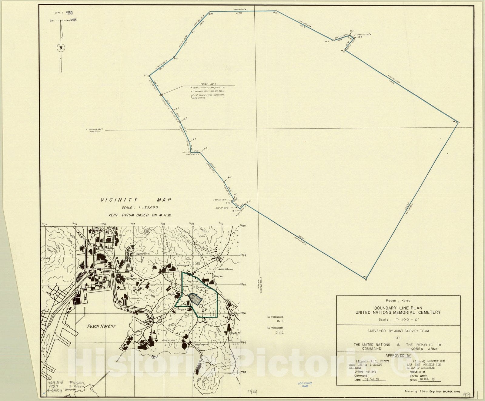 Pusan, Korea : boundary line plan, United Nations Memorial Cemetery / surveyed by joint survey team of the United Nations Command & the Republic of Korea Army ; printed by 1901st Engr. Topo. Bn., ROK Army.