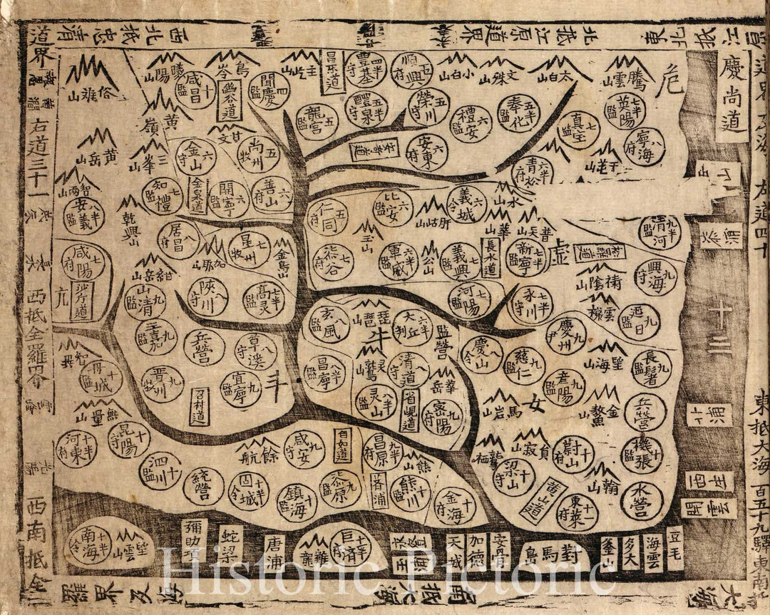 Historic 1721 Map - Da Ming yi Tong shan he tu. - 6-10 Map of Mt. Hadam, Kyongsang Province, Korea -