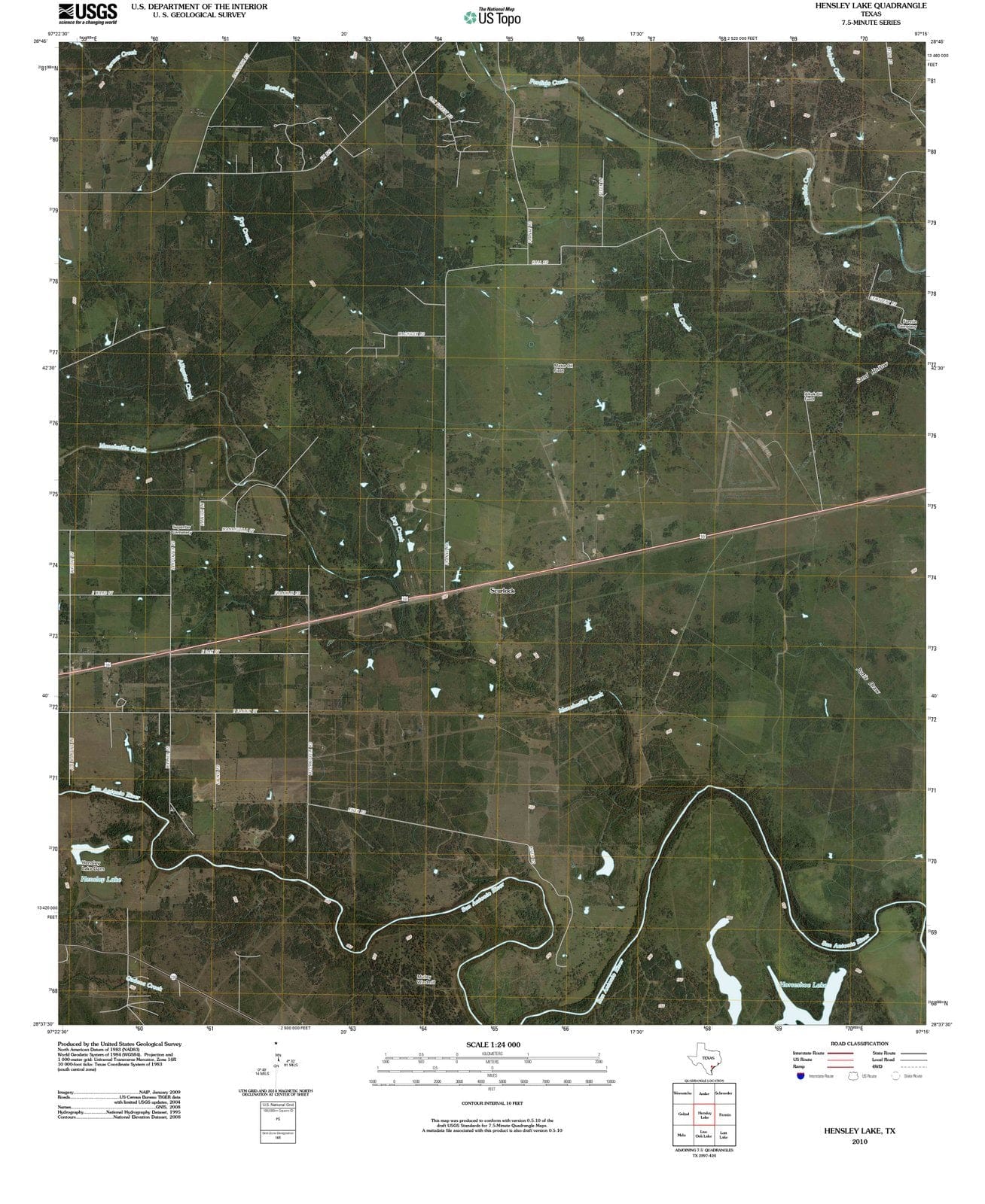 • 2010 Hensley Lake, TX - Texas - USGS Topographic Map