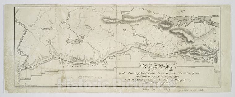 • .Historic 1825 Map - Map And Profile Of The Champlain Canal As Made From Lake Champla - Vintage Wall Art