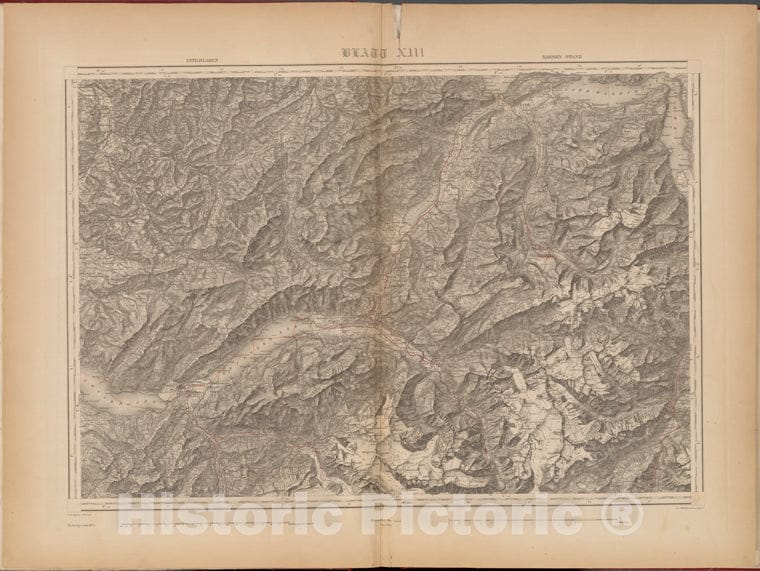 Historic 1864 Map - Blatt Xiii: Interlaken, Sarnen, Stanz - Switzerland - Topographische Karte Der Schweiz - Vintage Wall Art