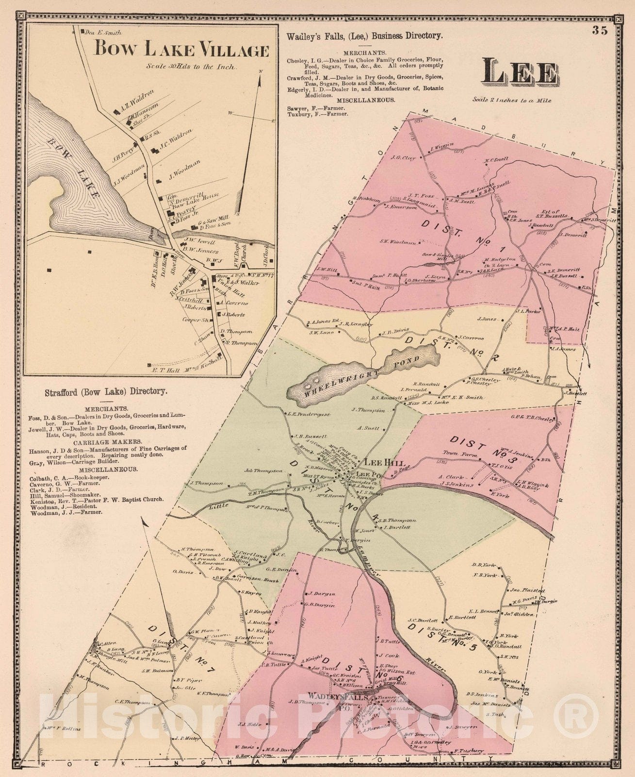 • .Historic Map : 1871 Lee, Strafford County, New Hampshire. Bow Lake Village. - Vintage Wall Art