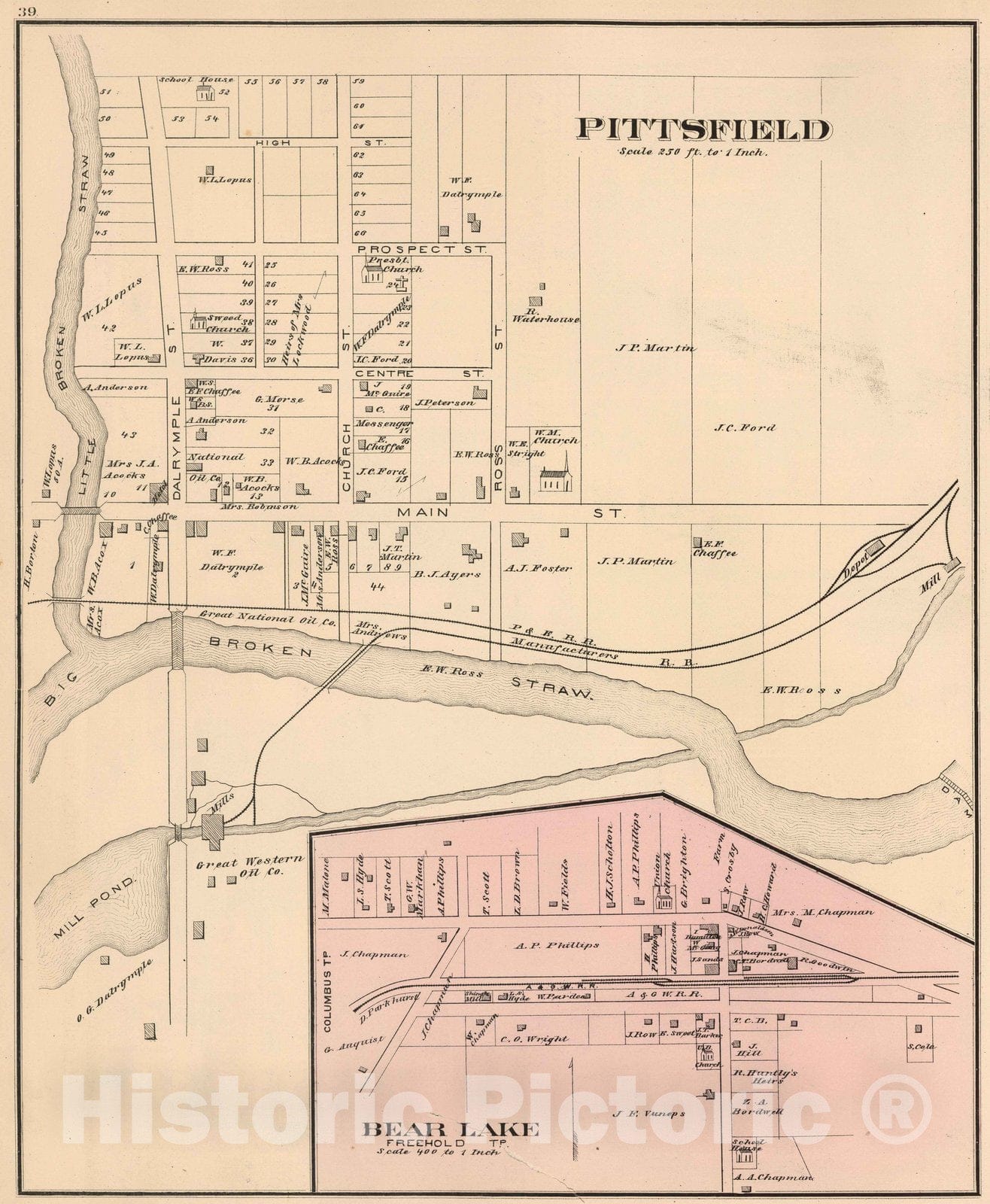 Historic Map : 1878 Pittsfield, Warren County, Pennsylvania. Bear Lake. - Vintage Wall Art