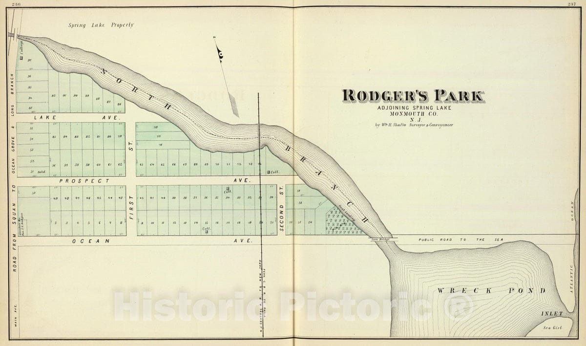 Historic Map : 1878 Rodger's Park, adjoining Spring Lake, Monmouth Co, N.J. - Vintage Wall Art