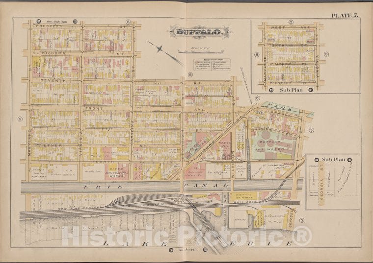 Historic Map - 1891 Buffalo,New York (N.Y.) Plate No. 7 [ Bounded By Prospect St, Genesee St, Lake Erie, Maryland St.]