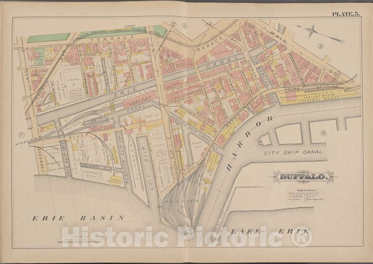 Historic Map - 1891 Buffalo,New York (N.Y.) Plate No. 5 [ Bounded By Terrace, Main St, Lake Erie, Erie Basin, Genesee St.]