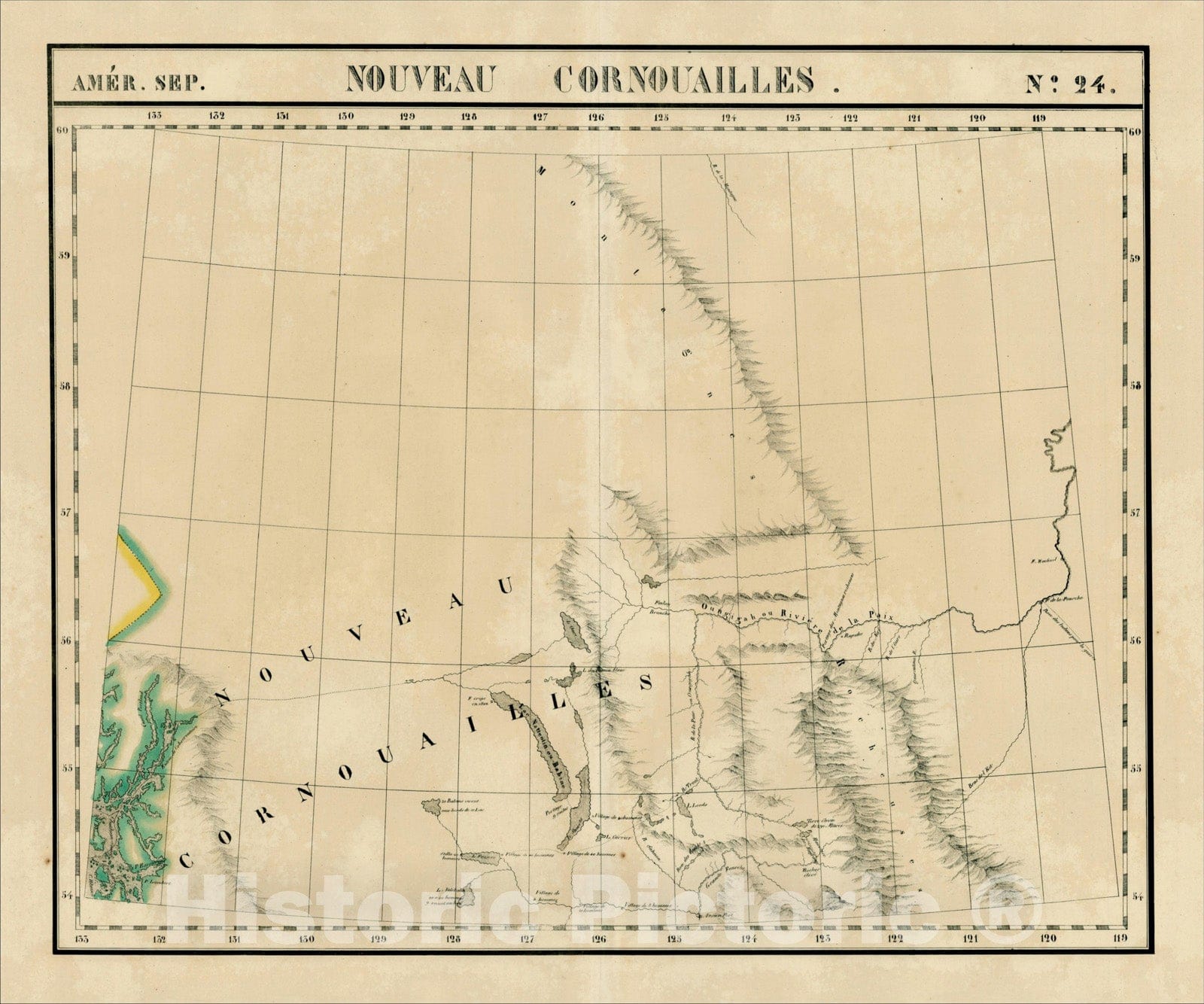 Historic Map : Amer. Sep. No. 24. Nouveau Cornouailles [Prince Rupert, Babine Lake &c], 1825, , Vintage Wall Art