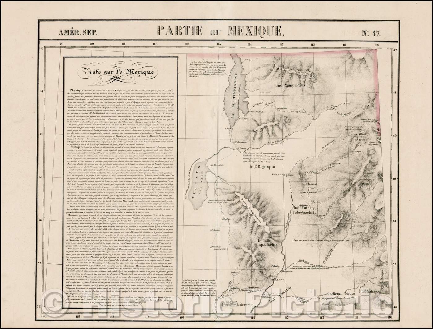 Historic Map - Amer. Sep. No. 47. Partie Du M :: Region from Lake Timpangos, Lake Teguayo and Rio de los Piramides Sulfareas, Colorado and Wyoming, 1827 - Vintage Wall Art