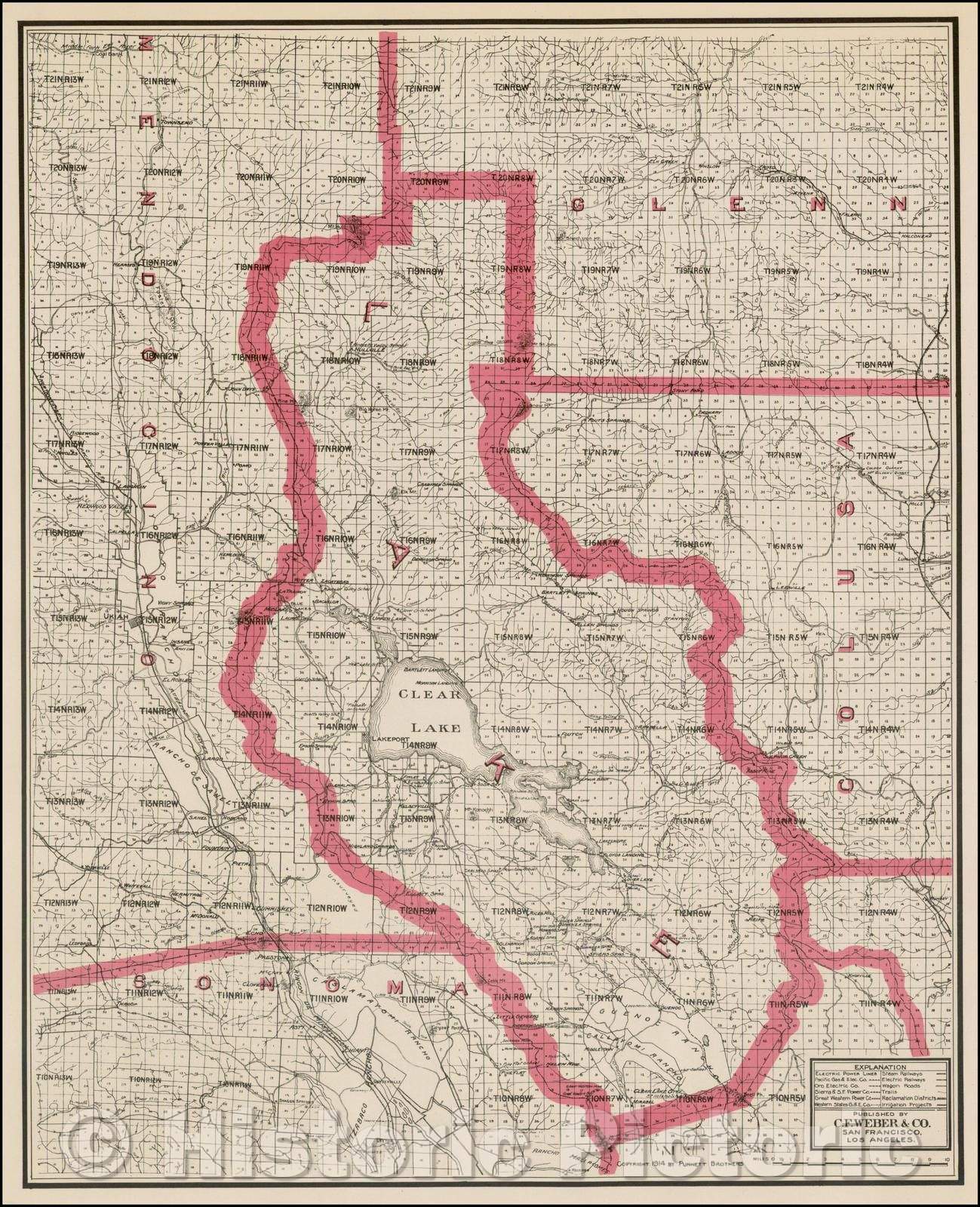 C.F. Weber's Map of Lake County California, 1914, Punnett Brothers