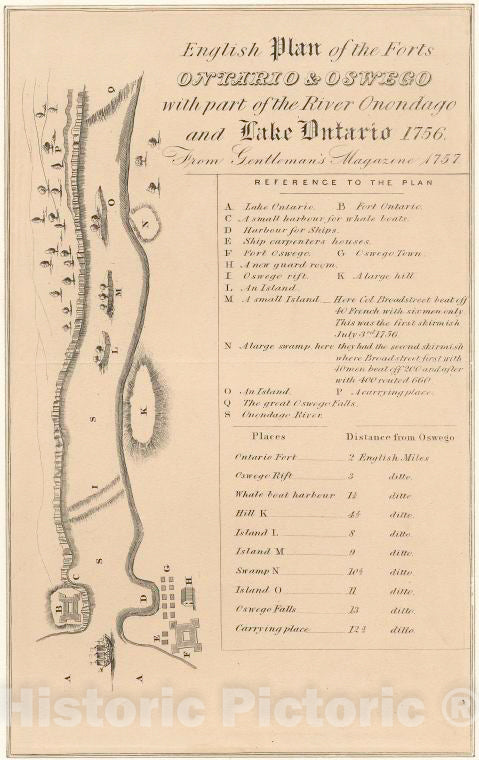 Historic Map - English Plan Of The Forts Ontario & Oswego With Part Of The River Onondago And Lake Ontario 1756. - Oswego (N.Y.) - Vintage Wall Art