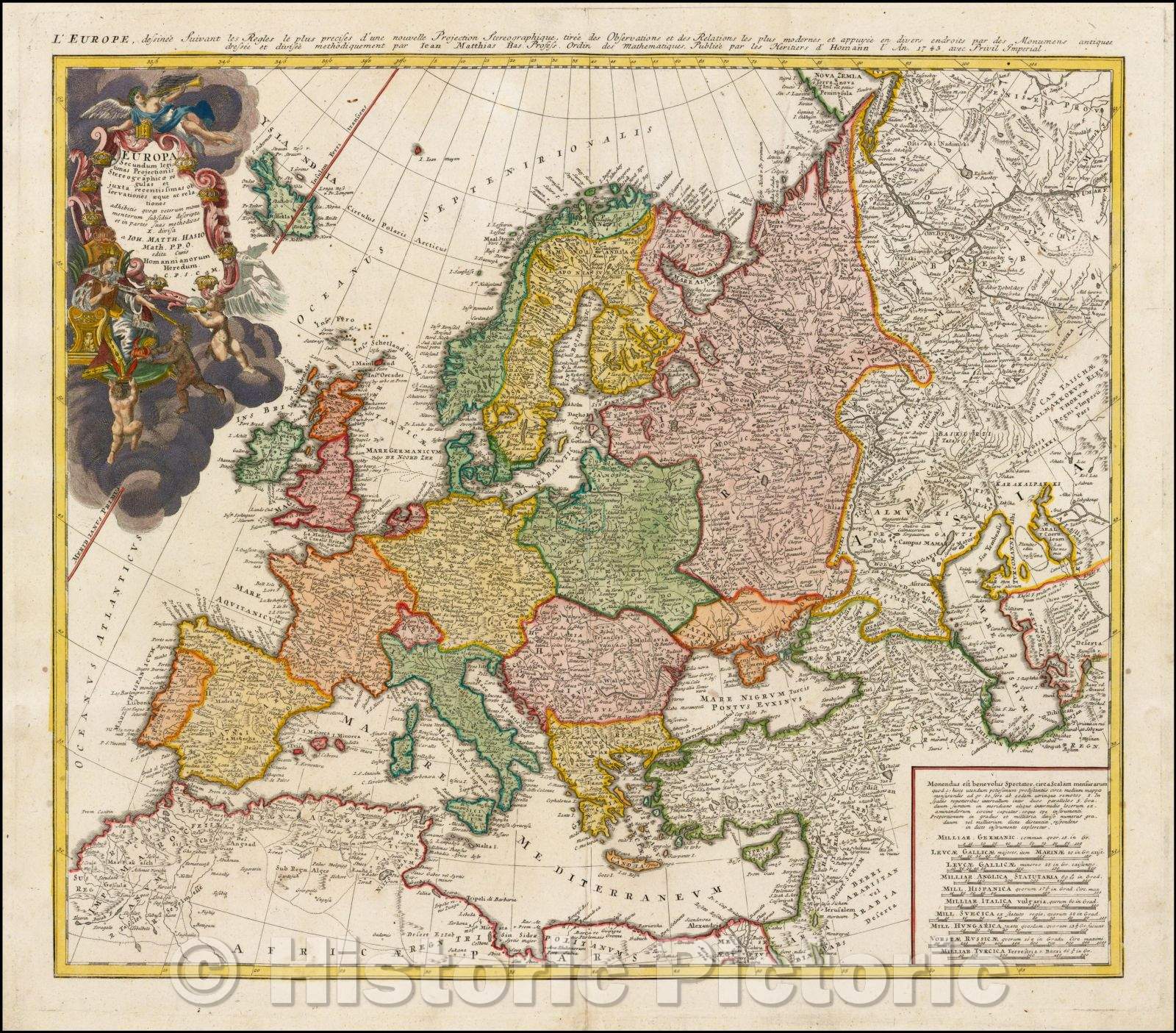 • Historic Map - Europa Secundum legitimas Projectionis Stereographicae/Map of Europe, cities, towns, rivers, mtns, lakes, etc, 1743, Johann Matthaus Haas - Vintage Wall Art
