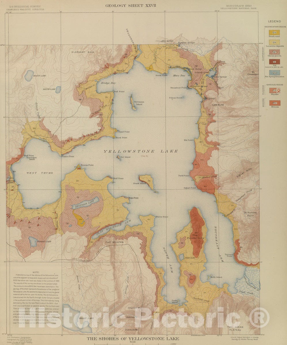 Historic Map : Geologic Atlas - 1904 The Shores of Yellowstone Lake. - Vintage Wall Art