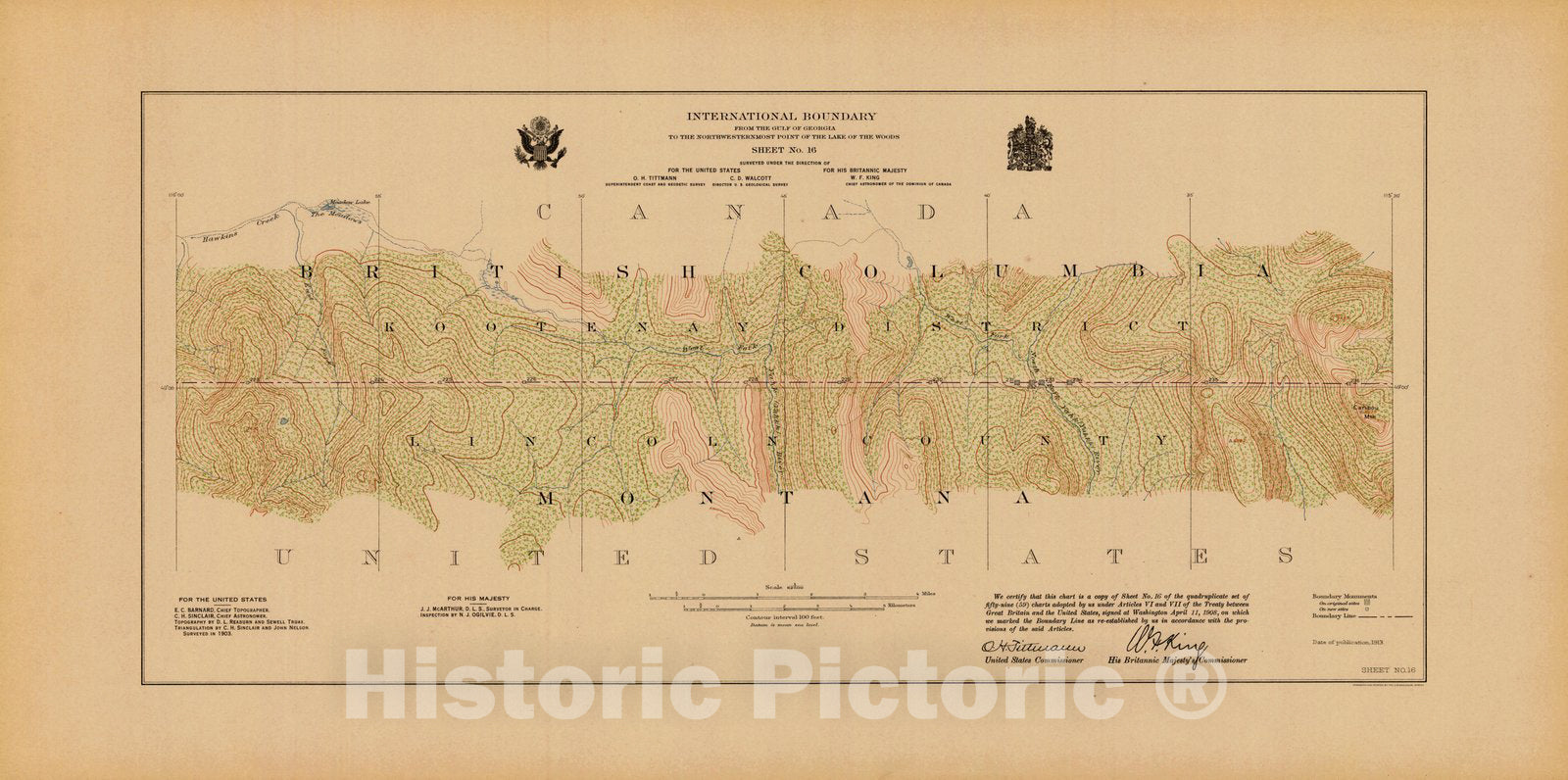 Historic Historic Nautical Map - International Boundary, From The Gulf Of Georgia To The Northwestern Point Of The Lake To The Woods, Sheet No. 16, MT, 1913 NOAA Topographic - Vintage Poster Wall Art Reprint - 0