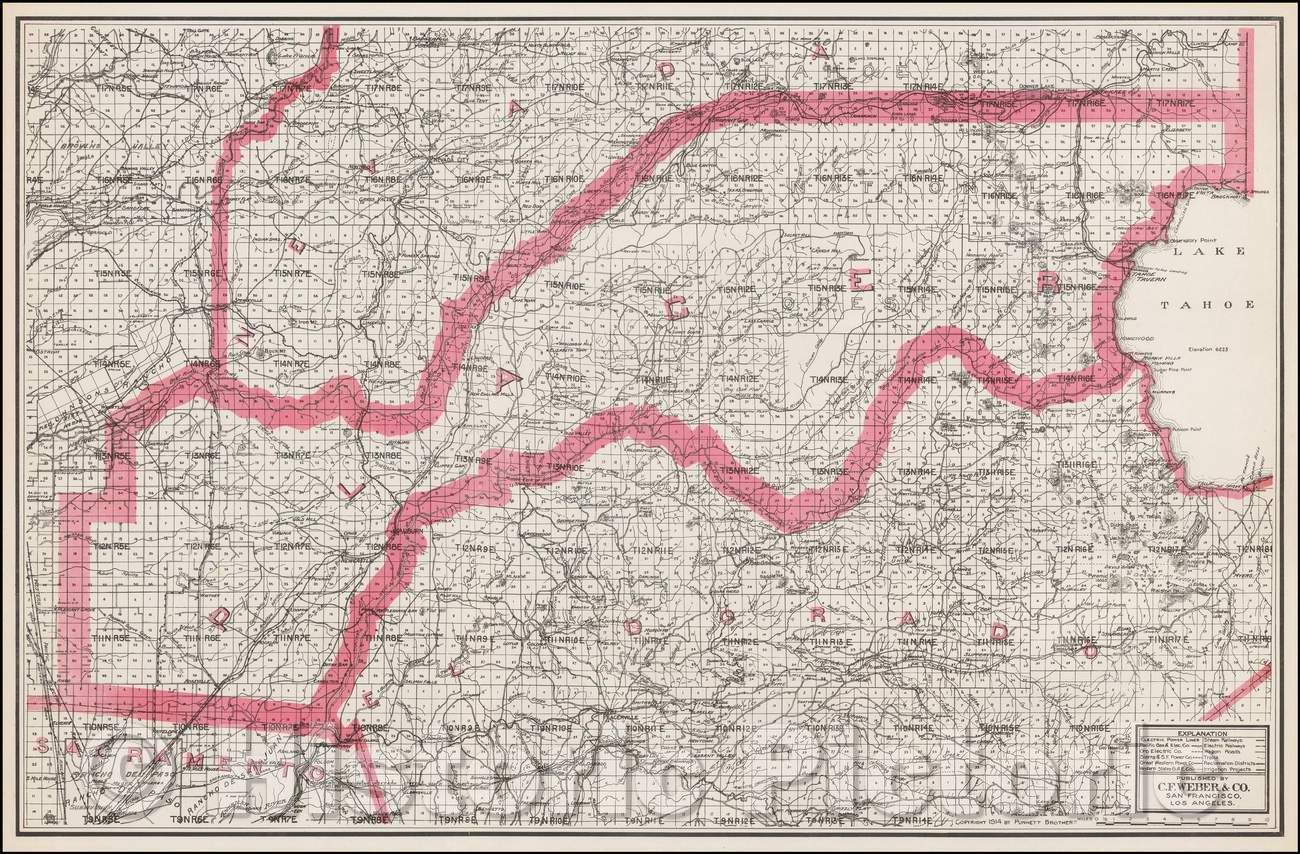 Historic Map - Lake Tahoe, Placer County, El Dorado County, 1914, Punnett Brothers - Vintage Wall Art