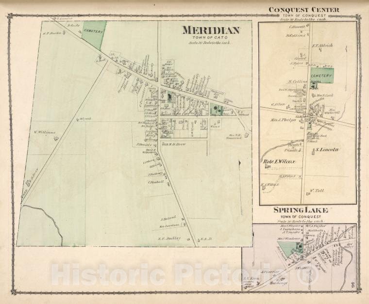 Historic Map - Meridian [Village]; Conquest Centre [Village]; Spring Lake [Village] - Atlases Of The United States - County Atlas Of Cayuga, New York.