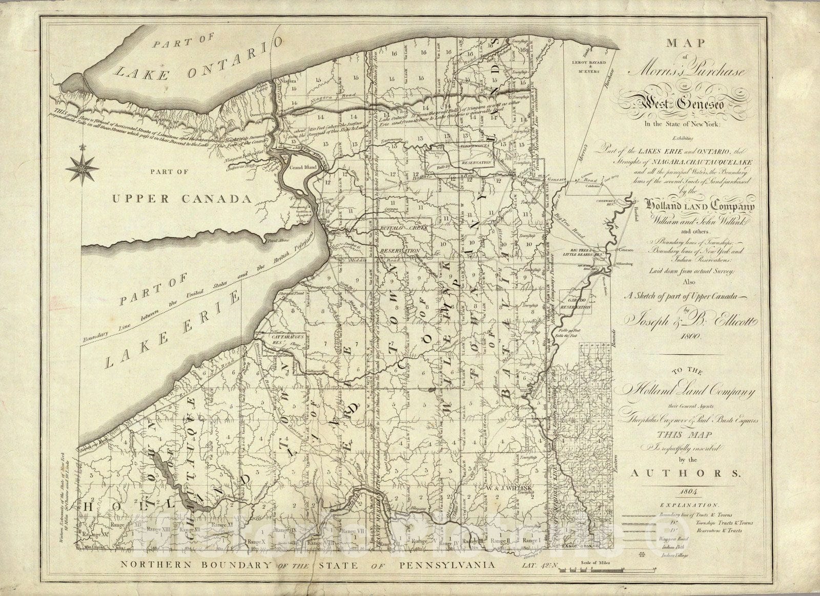 Historic Map - Map of Morris's Purchase or West Geneseo In the State of New York. Exhibiting Part of the Lakes Erie and Ontario, 1800, Joseph Ellicott - Vintage Wall Art
