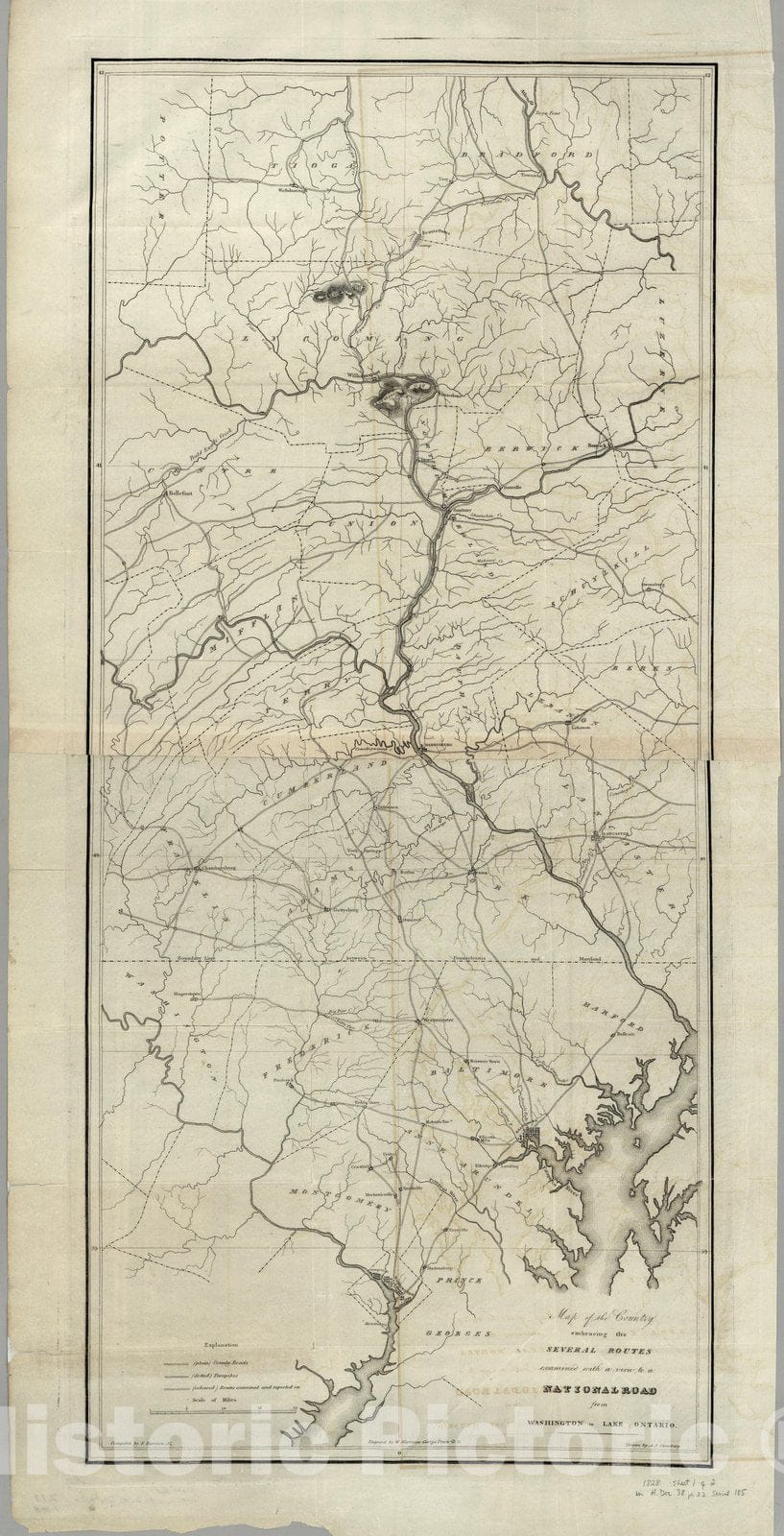 • .Historic Map : National Road from Washington to Lake Ontario 1828 - Vintage Wall Art