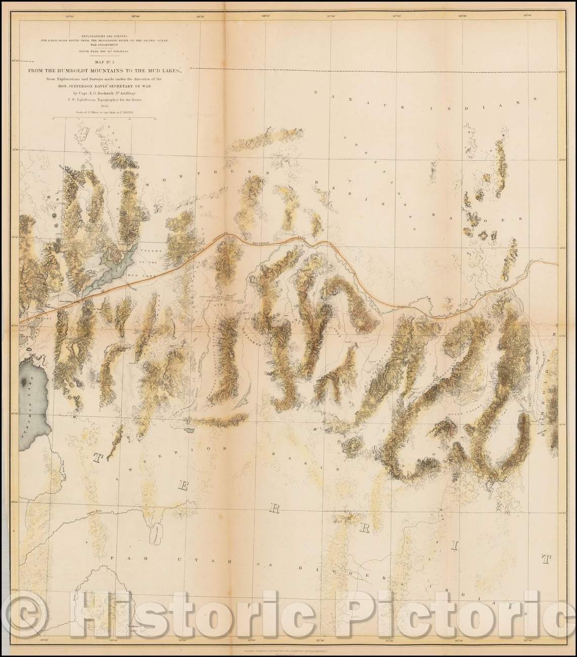 • .Historic Map - Map No. 5 From The Humboldt Mountains To The Mud Lakes; from Explorations and surveys made, 1856, U.S. Pacific RR Surveys - Vintage Wall Art