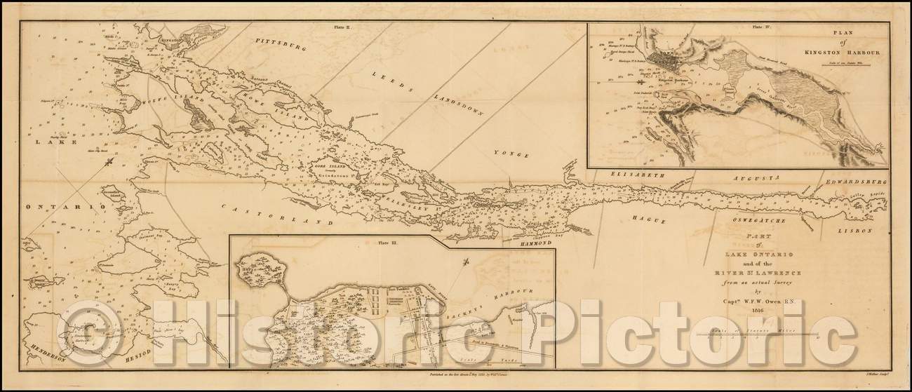 Historic Map - Part of Lake Ontario and of the River St. Lawrence from an actual Survey, 1818, John Walker - Vintage Wall Art