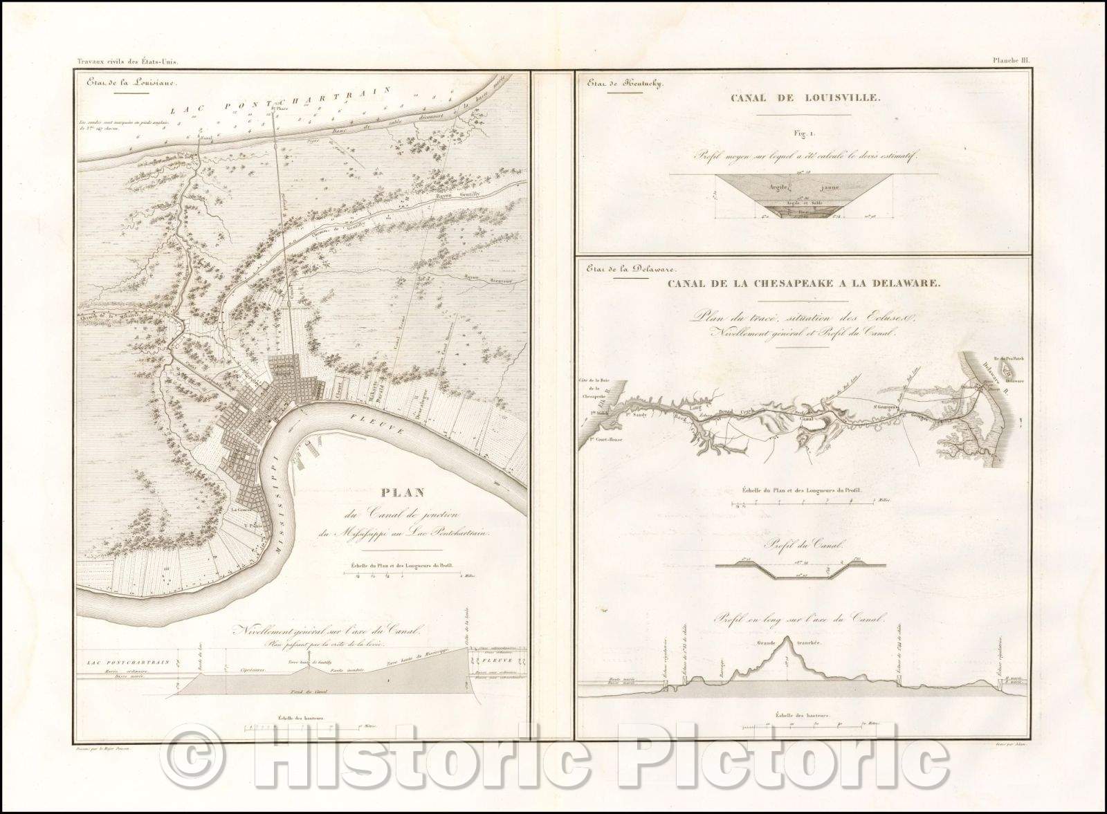 Historic Map - Plan du Canad de jonction du Mississippi au Lac Pontchartrain/Map of Mississippi Canad junction to Lake Pontchartrain, 1834 - Vintage Wall Art