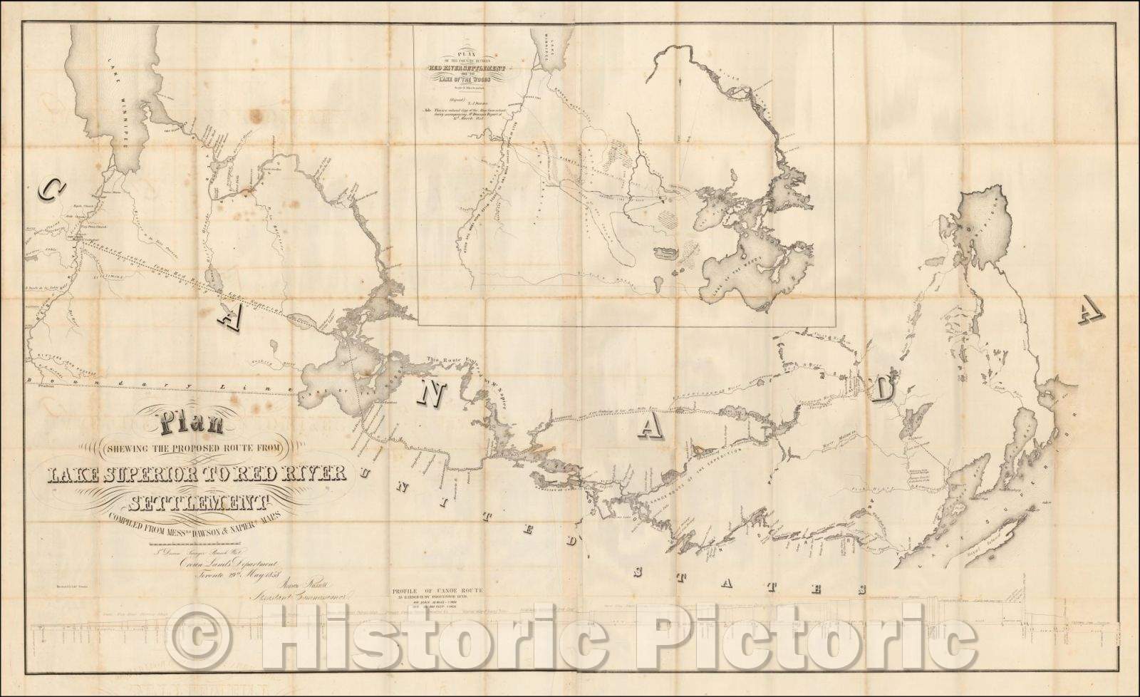 Historic Map - Plan Shewing The Proposed Route From Lake Superior To Red River Settlement, 1858, Henry Y. Hind - Vintage Wall Art