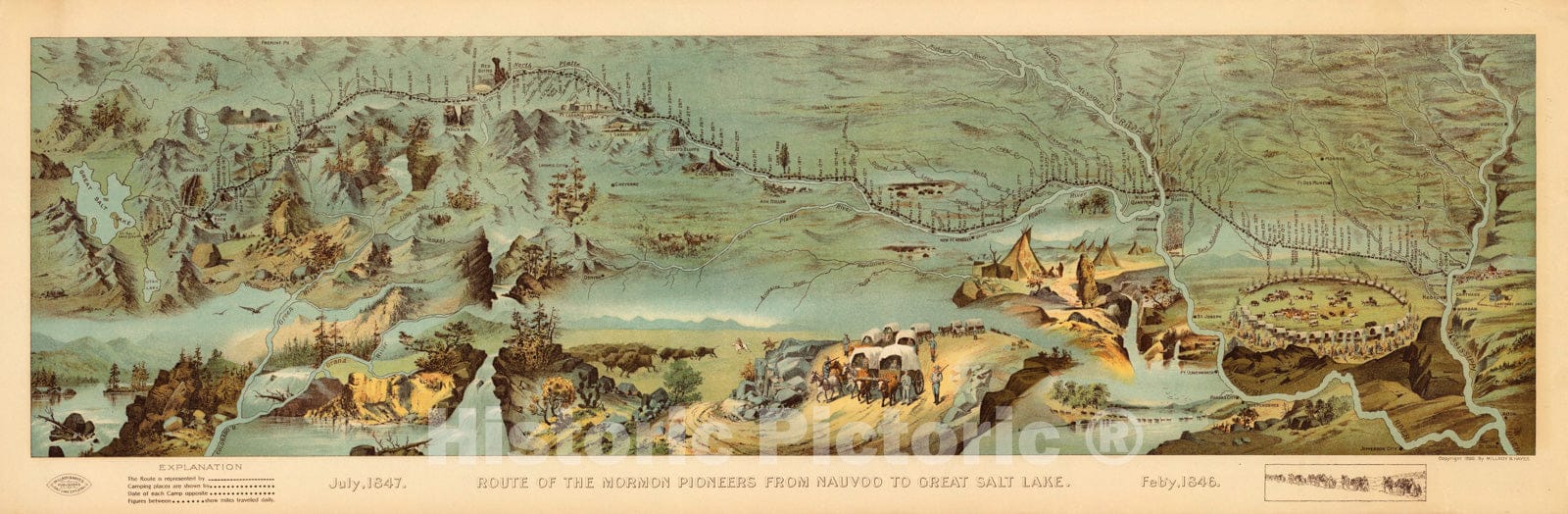 • Historic Map - Route of the Mormon Pioneers From Nauvoo To Great Salt Lake, Millroy & Hayes - Vintage Wall Art