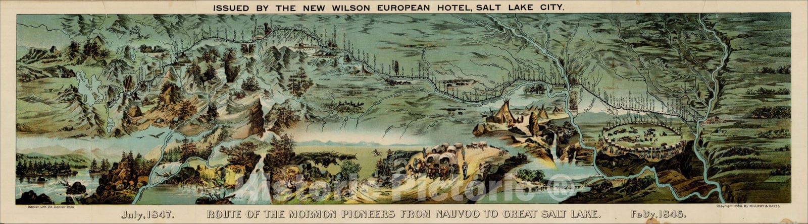 • .Historic Map : Route of the Mormon Pioneers From Nauvoo To Great Salt Lake. Feb'y 1846 July, 1847., 1899, Millroy & Hayes, v1, Vintage Wall Art