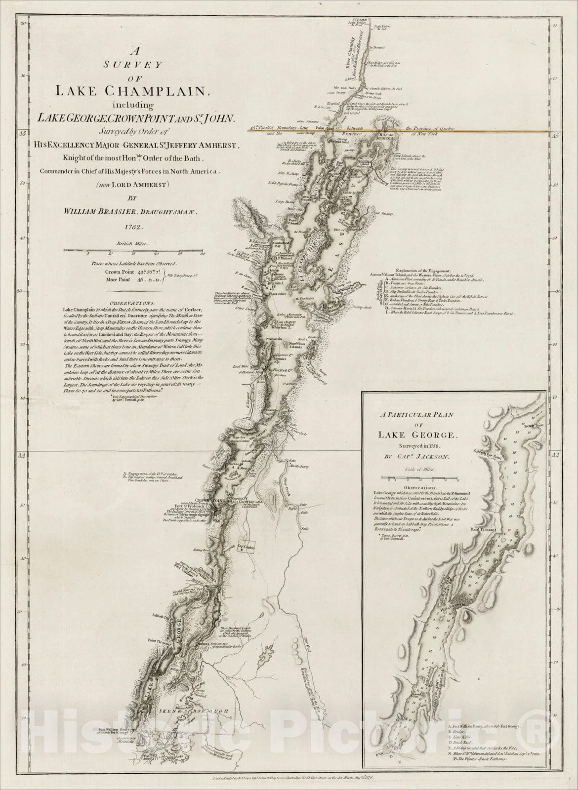Historic Map : A Survey of Lake Champlain, including Lake George, Crown Point and St. John, 1776, Robert Sayer, Vintage Wall Art