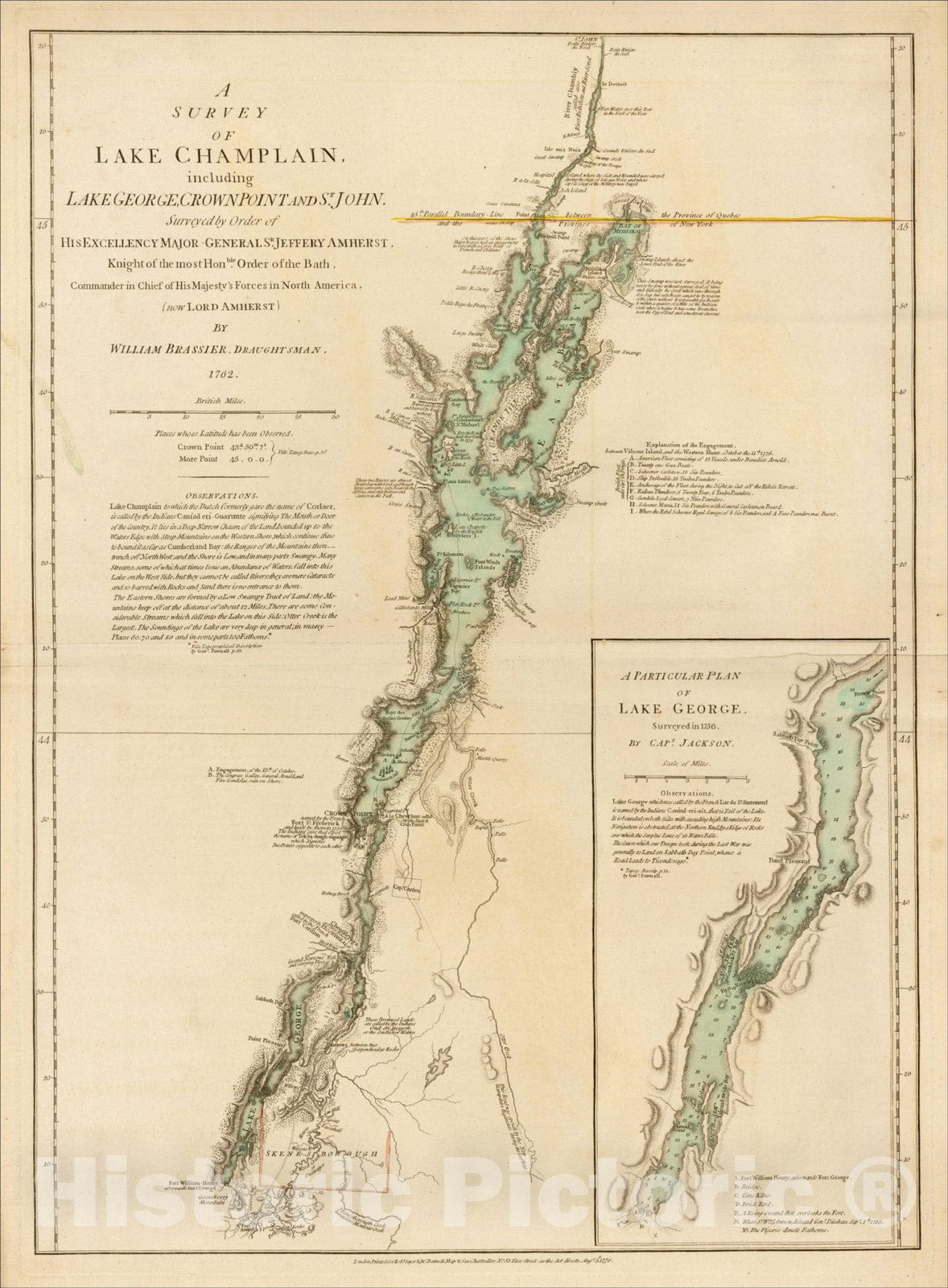 Historic Map : A Survey of Lake Champlain, including Lake George, Crown Point and St. John, 1776, v1, Vintage Wall Art