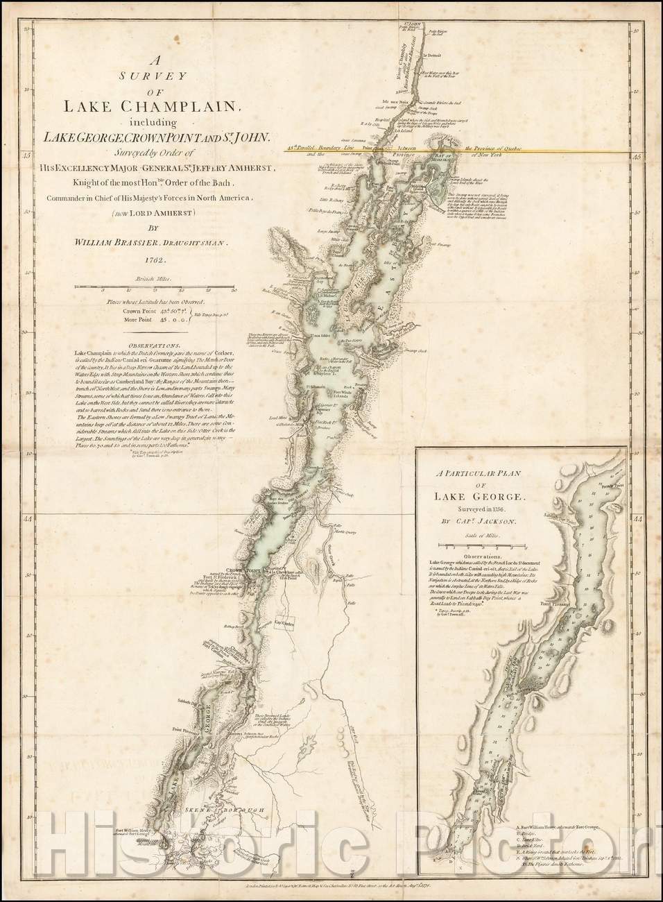 Historic Map - A Survey of Lake Champlain, including Lake George, Crown Point and St. John, 1776, Robert Sayer - Vintage Wall Art