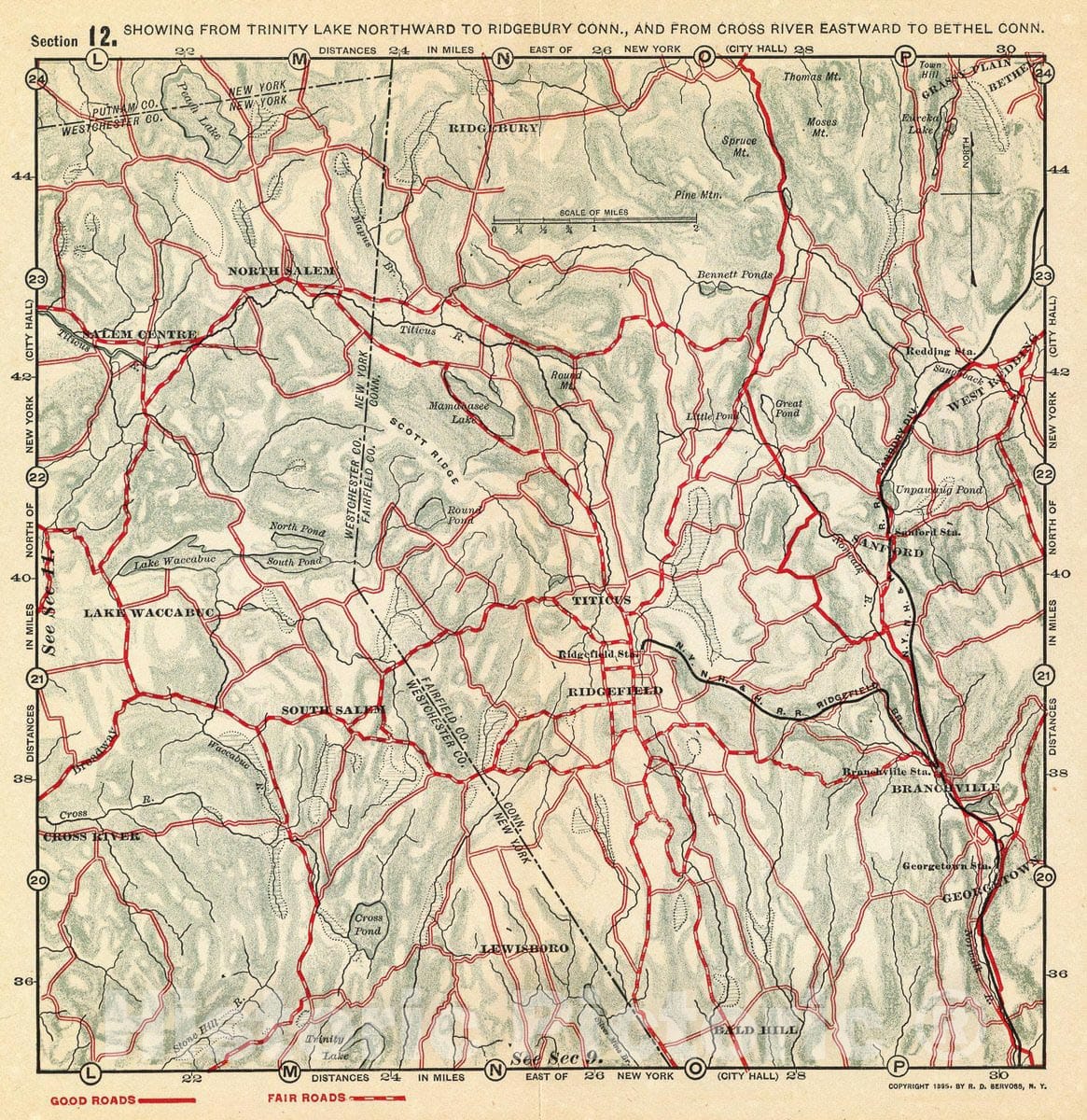 Historic Map : Trinity Lake-Ridgebury-Cross River-Bethel., 1895, Vintage Wall Decor