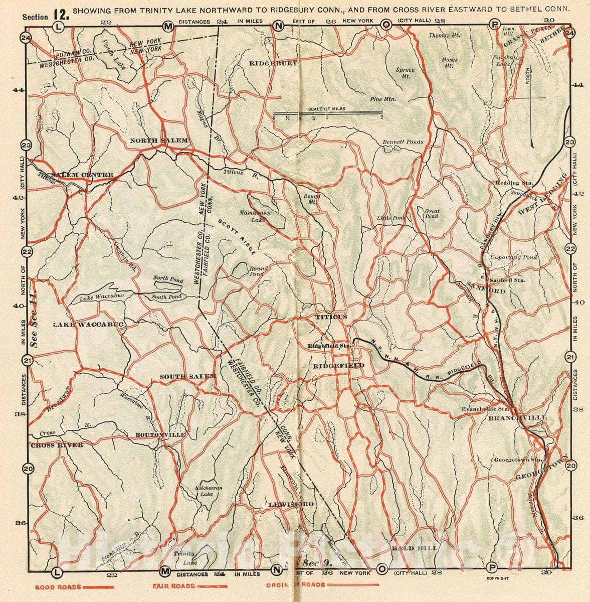 Historic Map : Trinity Lake-Ridgebury-Cross River-Bethel., 1902, Vintage Wall Decor