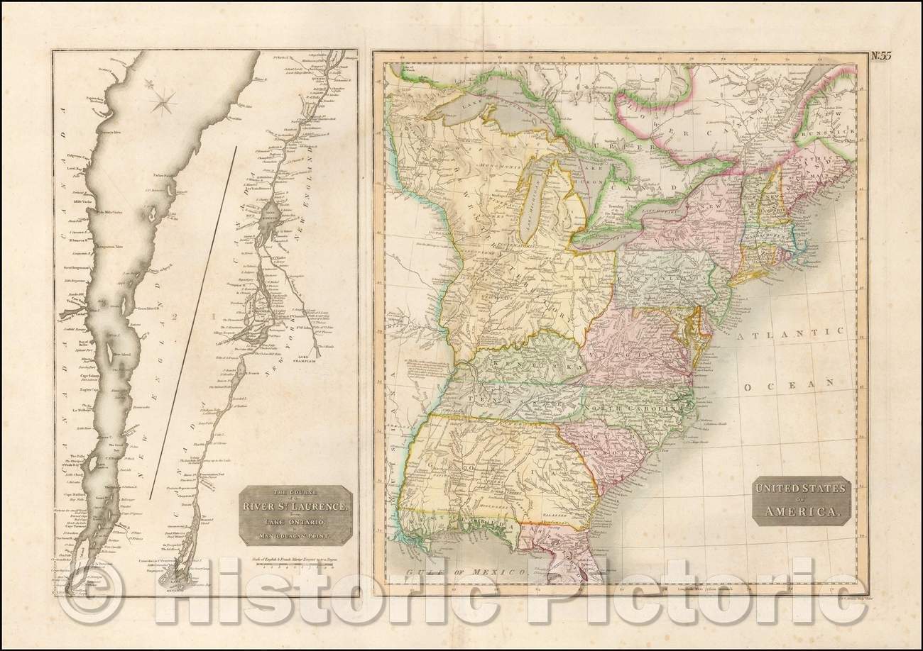 Historic Map - United States of America [with] The Course of the River St. Laurence from Lake Ontarion to Manicouagan Point, 1814, John Thomson v2