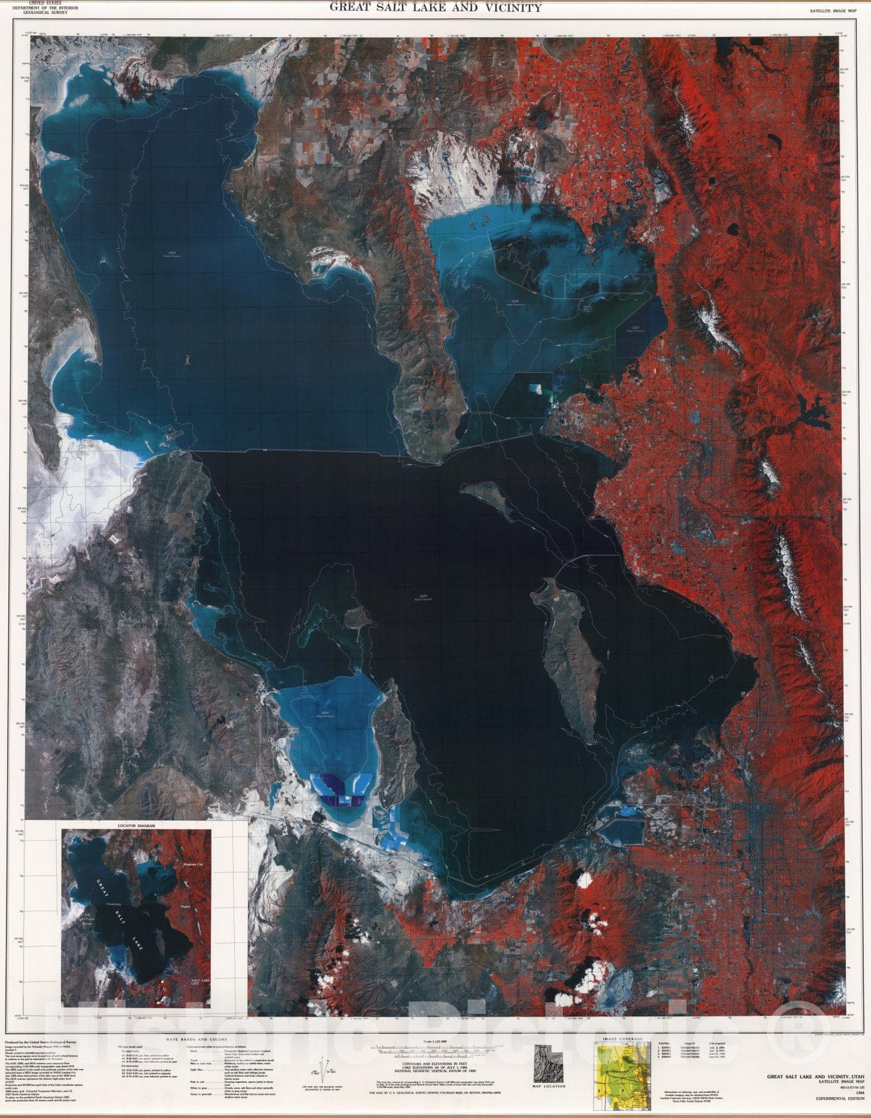 • .Historic Map : Wall Map, Utah: Great Salt Lake and Vicinity - Landsat Image 1984 - Vintage Wall Art