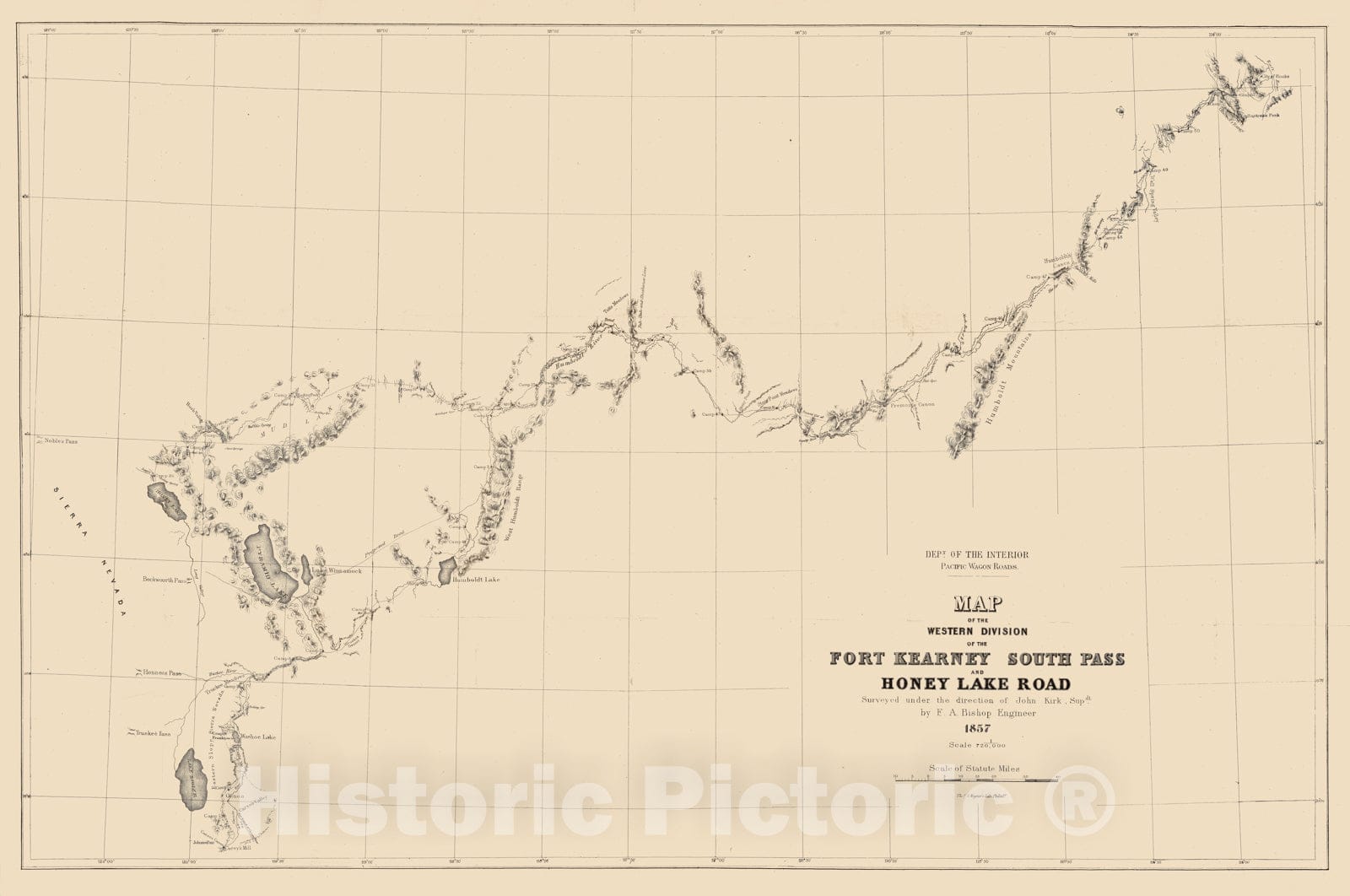 Historic Map - Map of the Western Division of the Fort Kearney South Pass and Honey Lake Road, 1857 - Vintage Wall Art