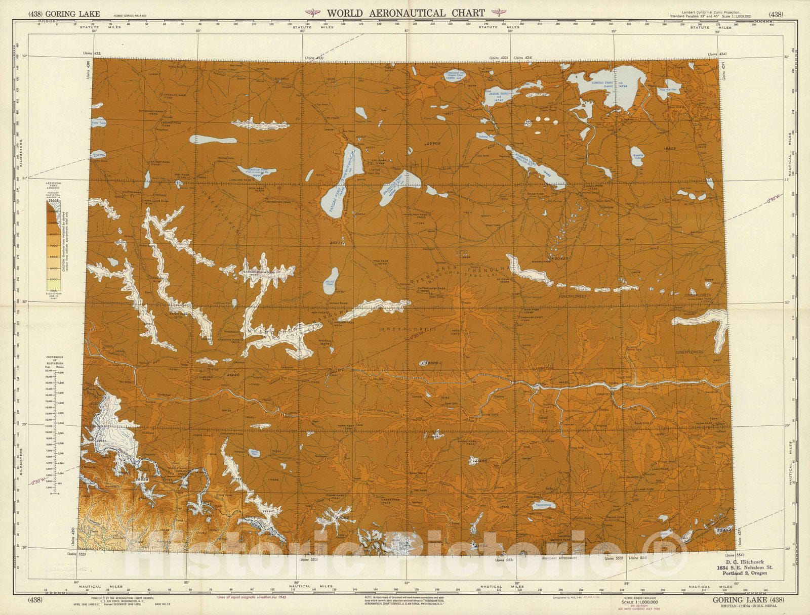 World Aeronautical Chart. Goring Lake (438). | World Aeronautical Chart. Goring Lake (438). | 3rd edition. Air information current as of May 1950. Lambert conformal conic projection. Isoline tinted relief map.