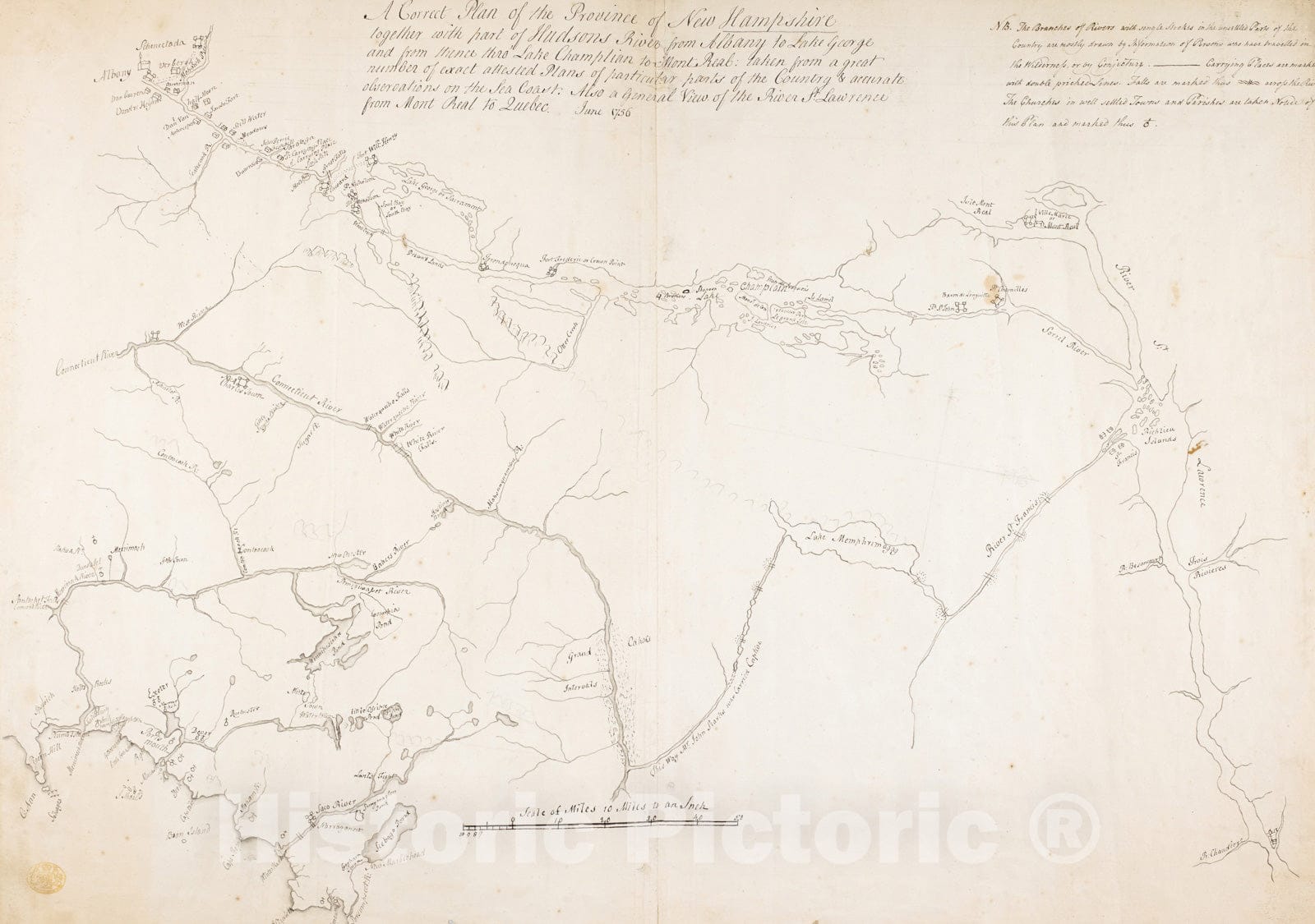 Historical Map, 1756 A Correct Plan of The Province of New Hampshire Together with pof Hudsons River from Albany to Lake George and from thence Thro' Lake Champlain, Vintage Wall Art