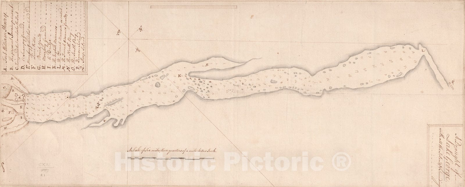 Historical Map, 1756 A Draught of Lake George with All The Islands & Soundings, Vintage Wall Art