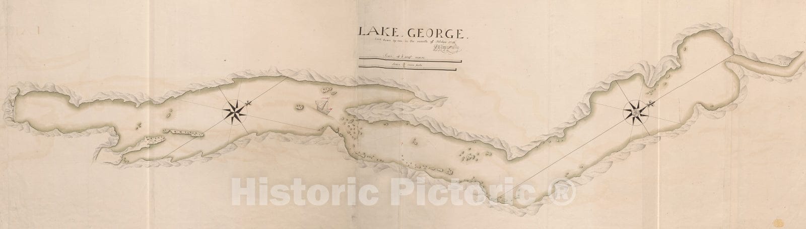 Historical Map, 1756 Lake George, Vintage Wall Art