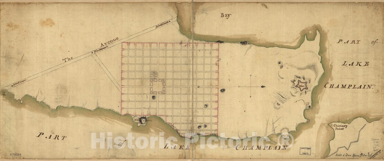 Historical Map, 1768 Crown Point & Part of Lake Champlain, Vintage Wall Art