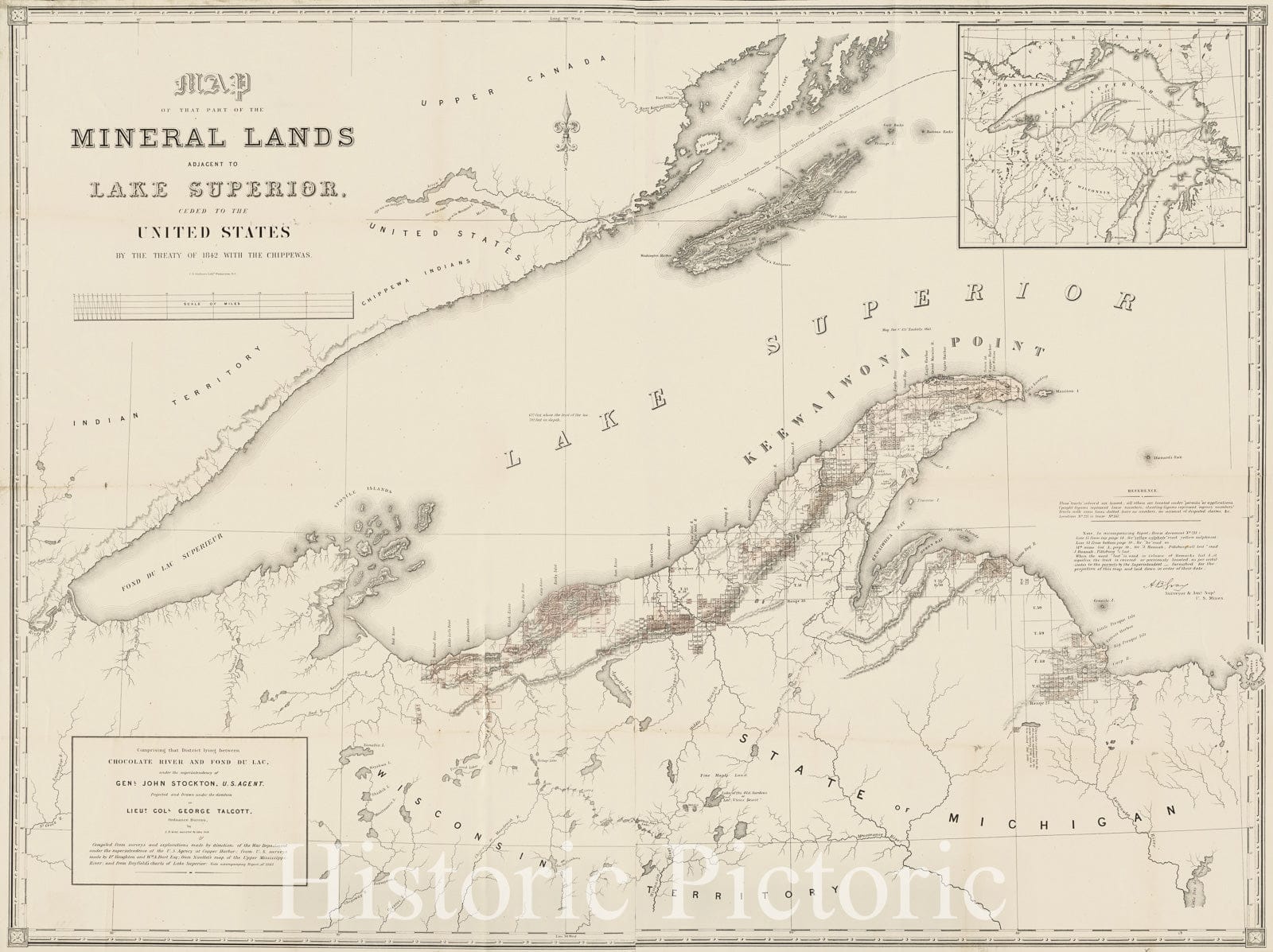 Historical Map, 1845 Map of That Part of The Mineral Lands Adjacent to Lake Superior, ceded to The United States by The Treaty of 1842 with The Chippewas, Vintage Wall Art