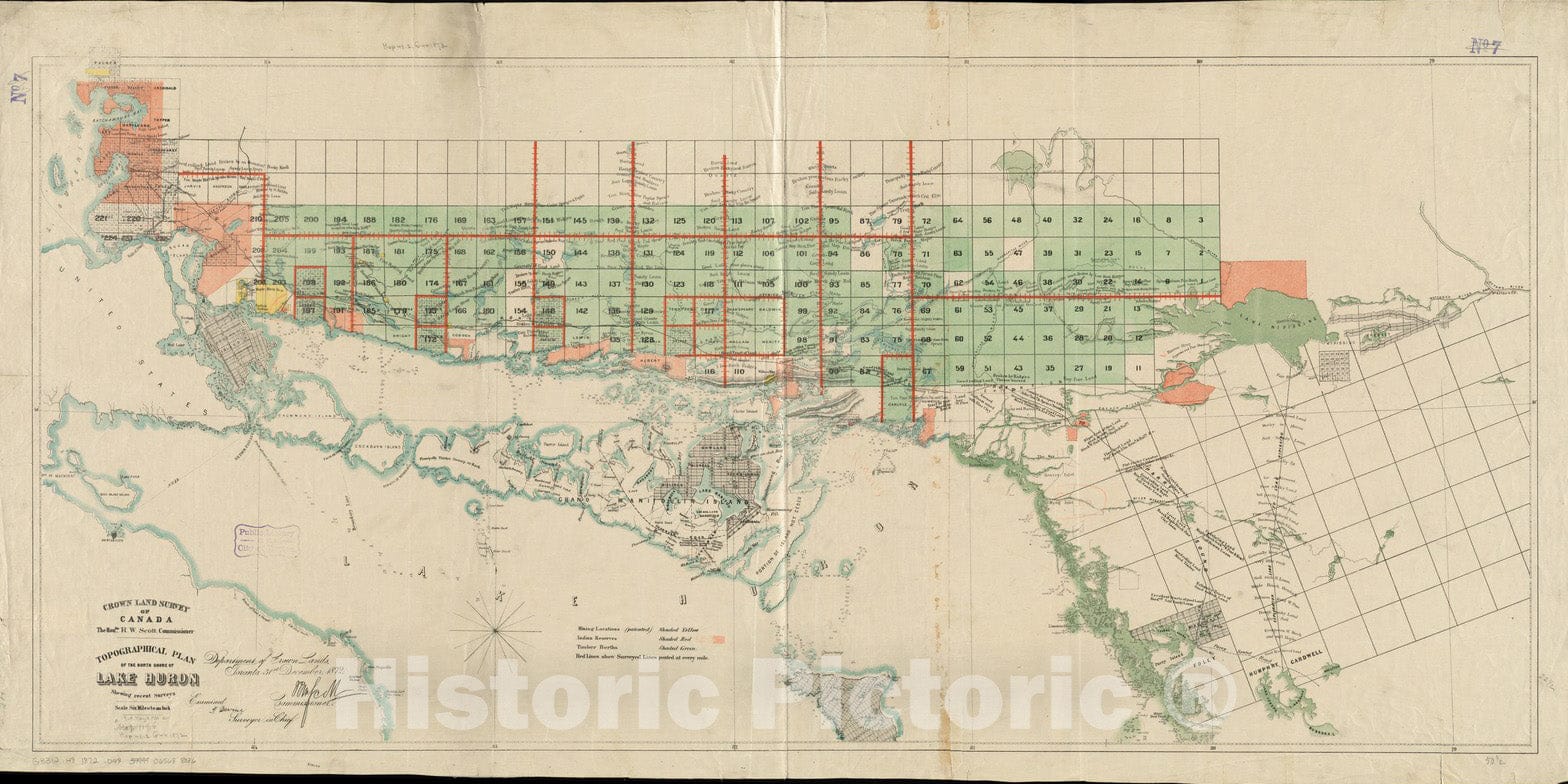 Historical Map, 1872 Topographical Plan of The North Shore of Lake Huron shewing Recent surveys, Vintage Wall Art