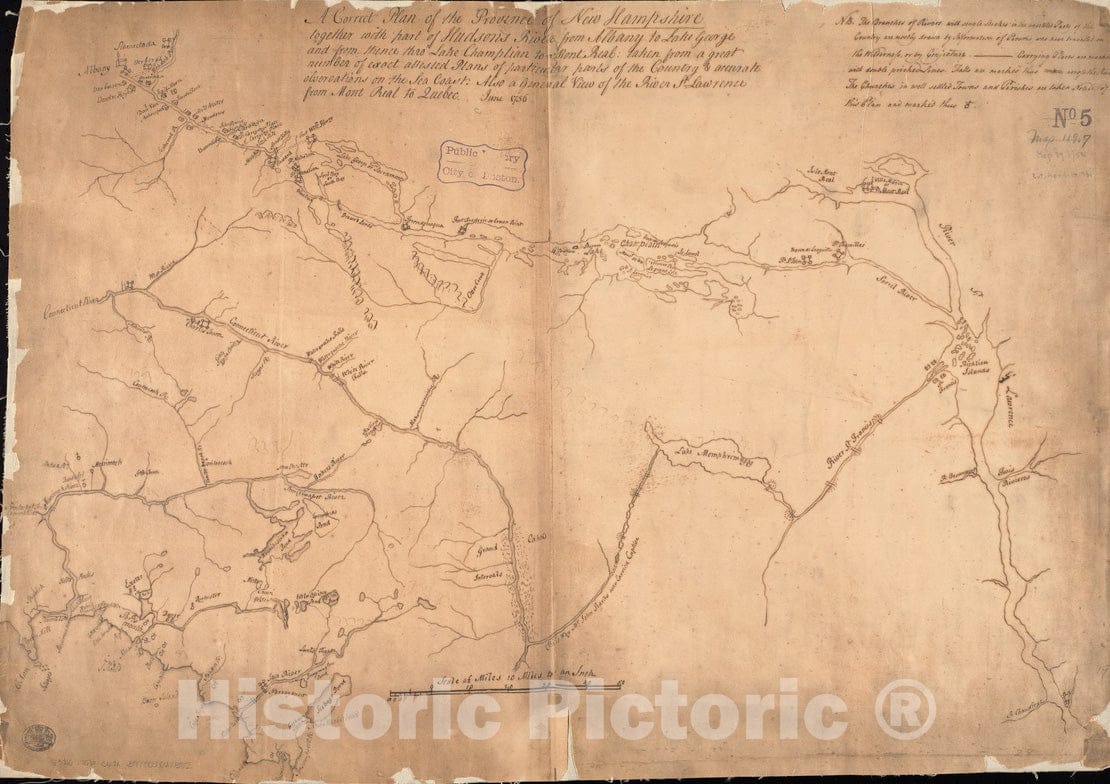 Historical Map, 1880 A Correct Plan of The Province of New Hampshire Together with pof The Hudsons River from Albany to Lake George and from thence Thro Lake, Vintage Wall Art