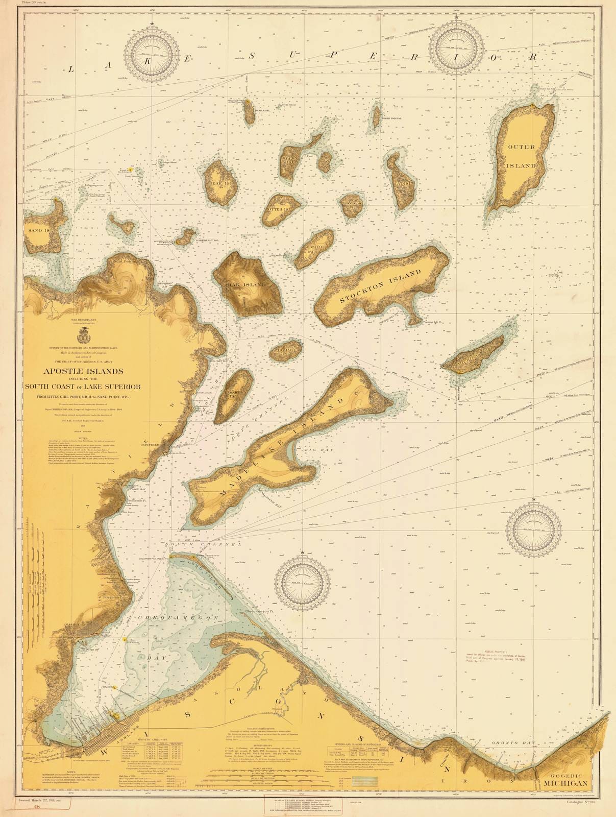 • .Historic Nautical Map - Apostle Islands Including The South Coast Of Lake Superior, 1918 NOAA Chart - Wisconsin (WI) - Vintage Wall Art
