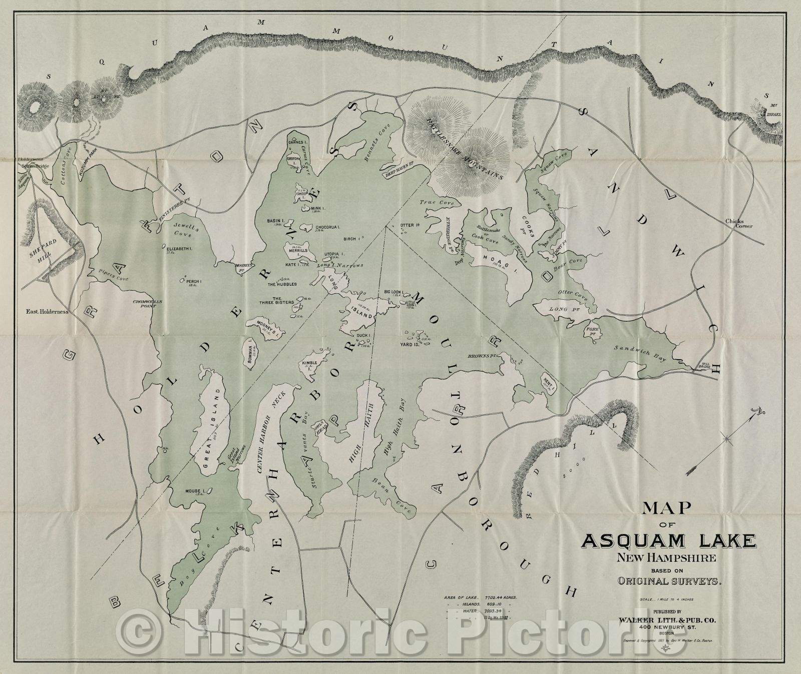 • .Historic Map : Map of Asquam Lake : New Hampshire, 1903 , Vintage Wall Art