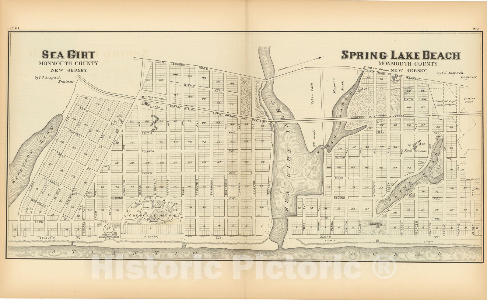 Historic Map : Atlas New Jersey Coast, Sea Girt & Spring Lake Beach 1878 , Vintage Wall Art