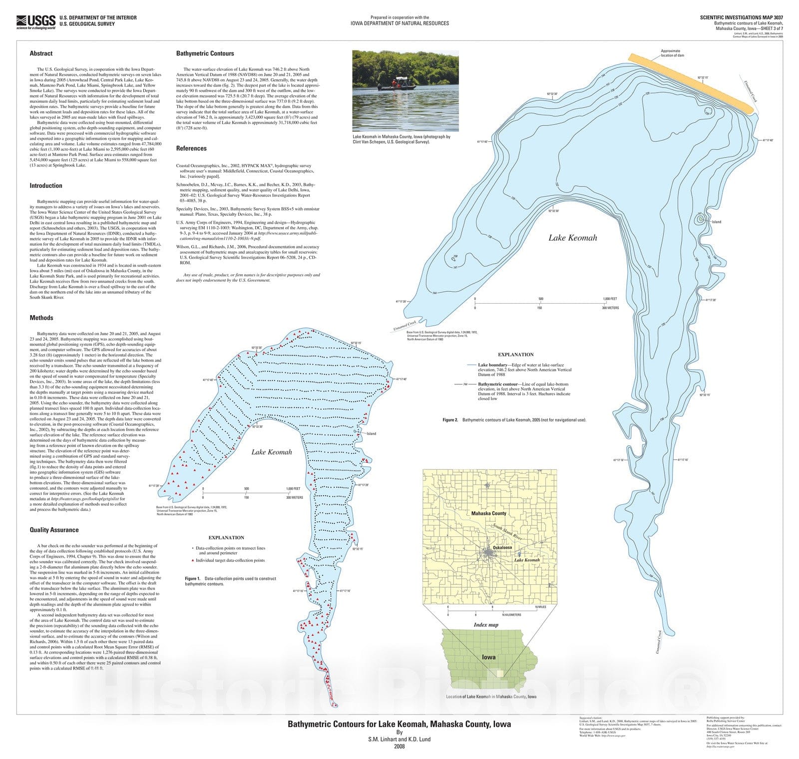 Bathymetric contours for Lake Keomah, Mahaska County, Iowa
