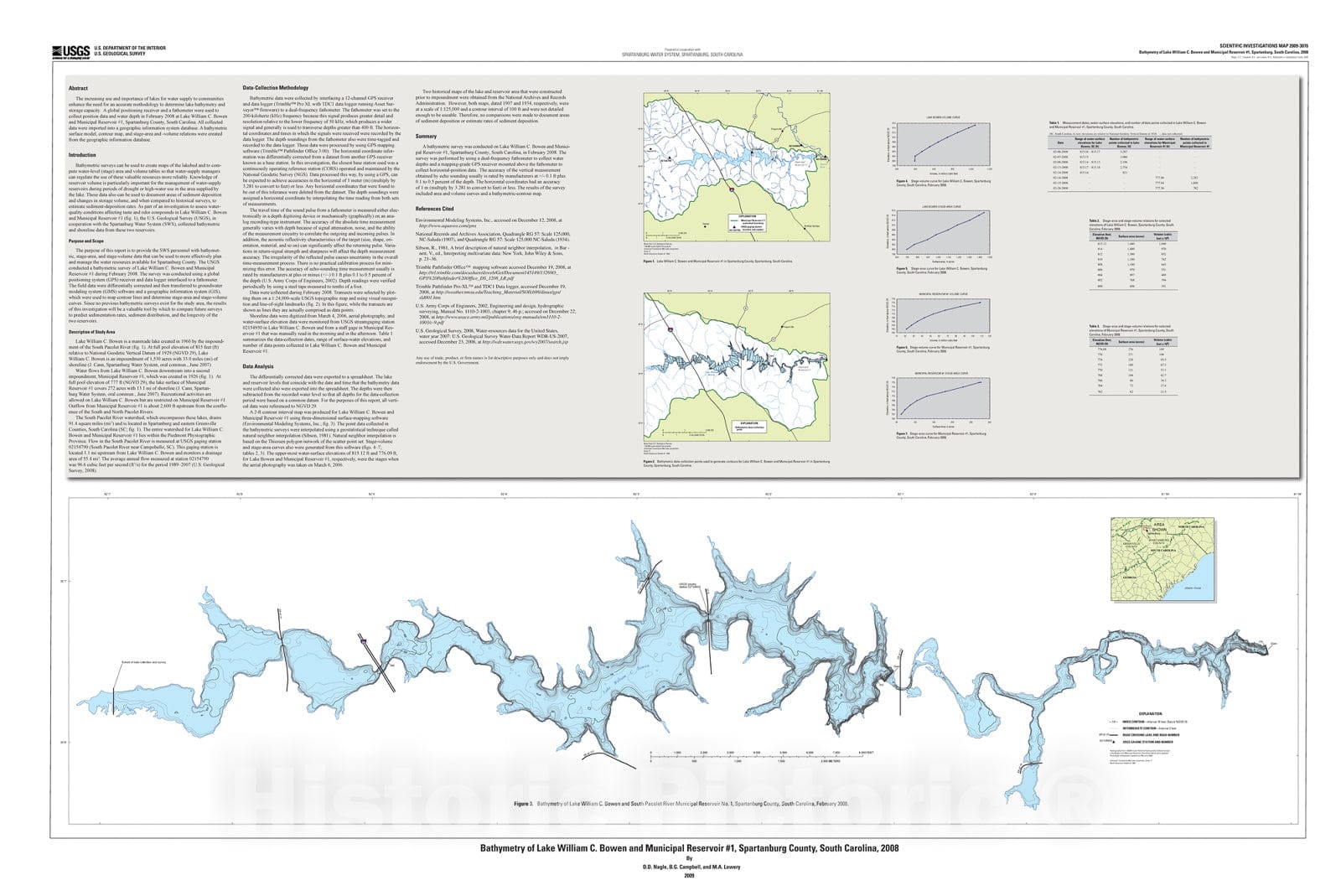 Map : Bathymetry of Lake William C. Bowen and Municipal Reservoir #1, Spartanburg County, South Carolina, 2008, 2009 Cartography Wall Art :