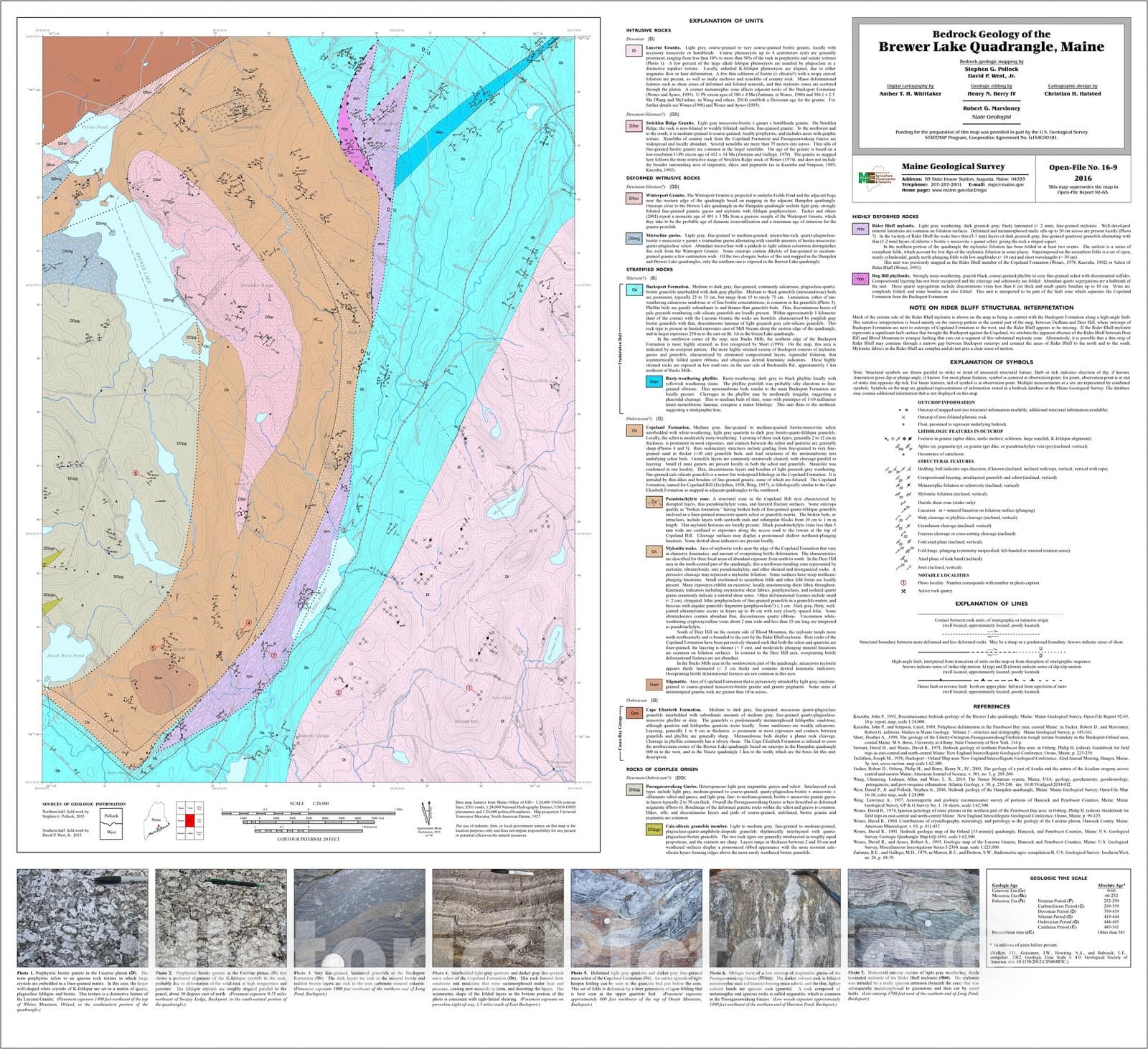 Map : Bedrock geology of the Brewer Lake quadrangle, Maine, 2016 Cartography Wall Art :