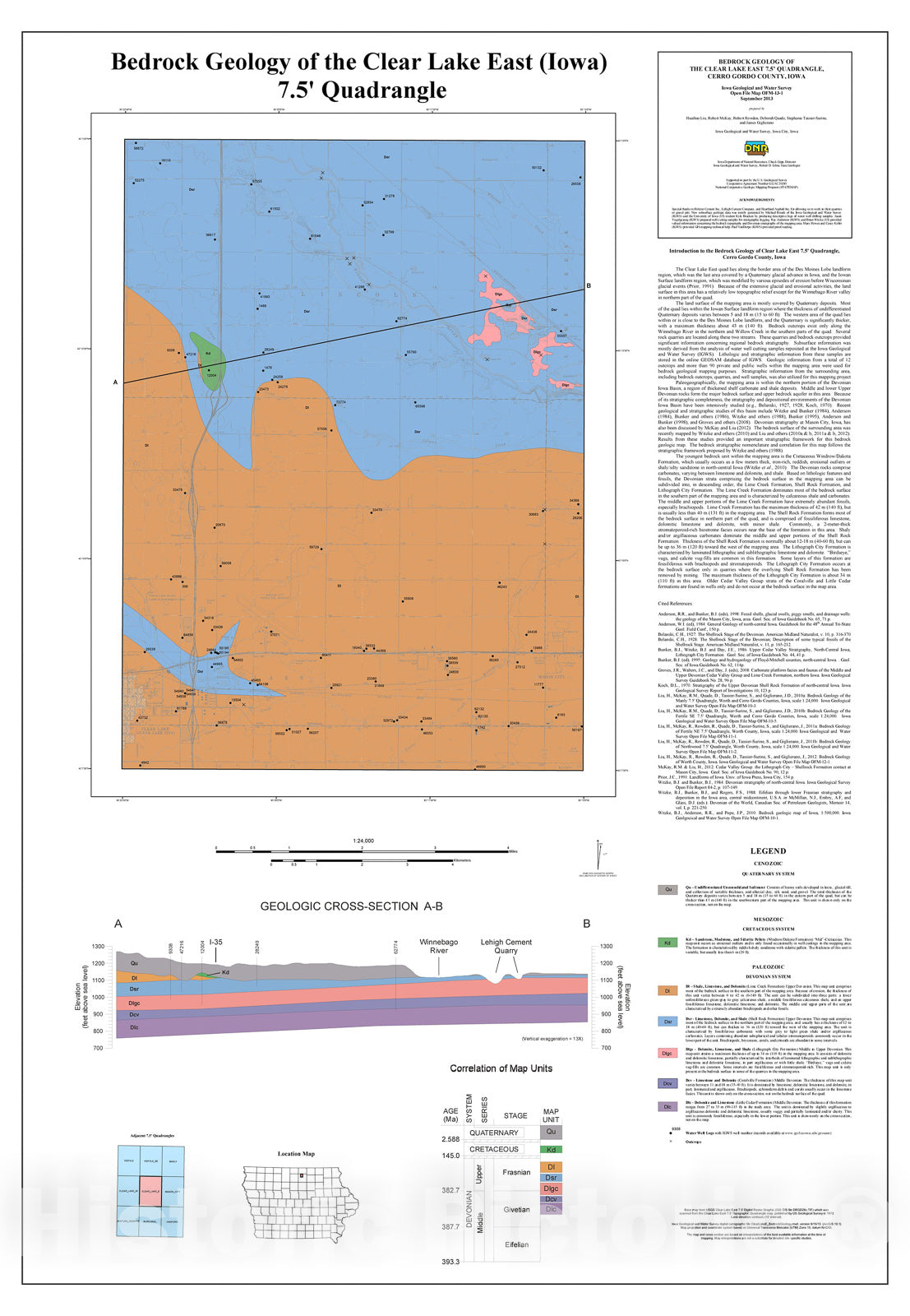 Map : Bedrock Geology of Clear Lake East 7.5' Quadrangle, Cerro Gordo County, Iowa, 2013 Cartography Wall Art :